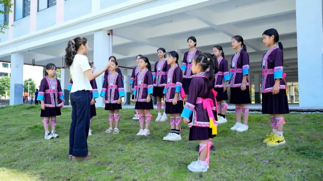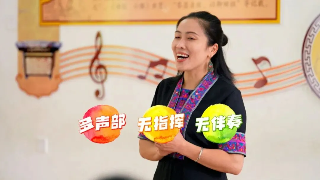 但将传统歌谣搬上现代舞台并不容易。新创作的歌曲音域宽广、转调复杂,对孩子们是巨大的挑战。老师带着他们用一根小草练习气息,学习让歌声如蝉鸣般悠长。