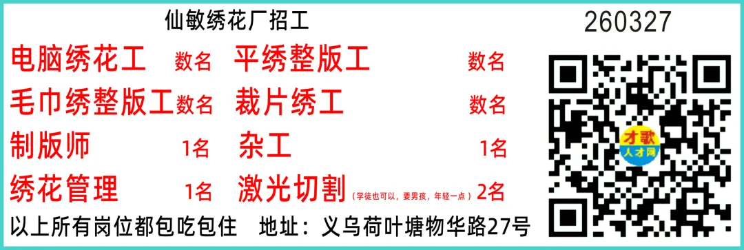 招 聘熟练花样机工 数名待遇优厚 有住房补贴地址:义乌江东街道下湾村5区25栋7号