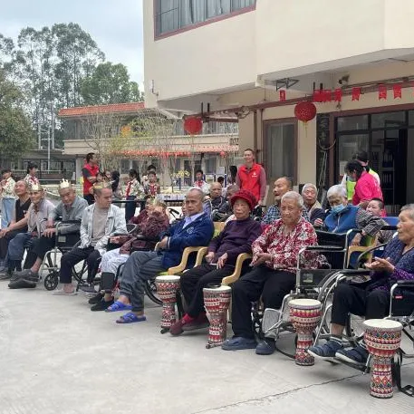 精彩的文艺表演在热烈的掌声中拉开帷幕。连南小学的同学身着整齐的服装,化身为传递快乐的小天使。他们依次登台,带来精心准备的节目:清脆悦耳的童声合唱、活力四射的青春舞蹈、节奏轻快的葫芦丝演奏,精彩纷呈。台下的长者专注观看,脸上洋溢着慈祥的笑容,不时随着节拍轻轻鼓掌。院内长者也为同学们带来特别表演——非洲鼓演奏,现场气氛其乐融融。