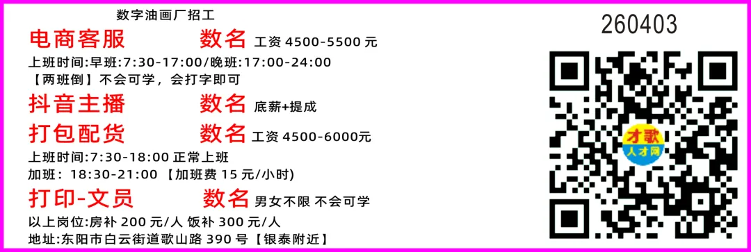 廿三里招聘:普工.美工.电商学徒,包03-26