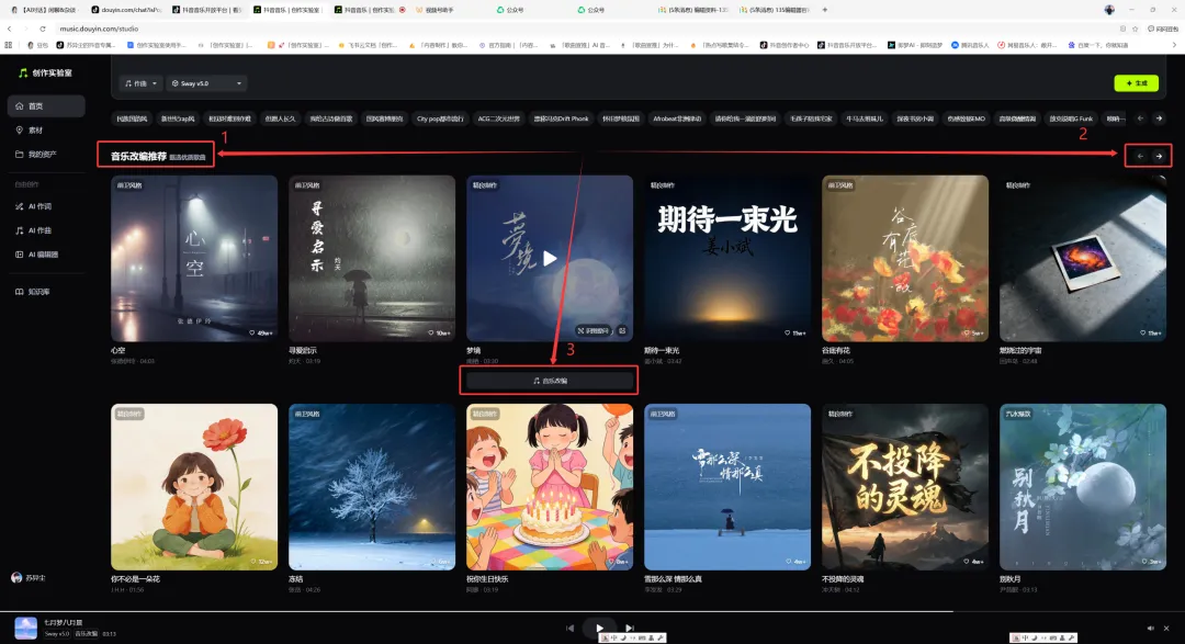 1,在「创作实验室」首页找到“音乐改编推荐”分栏