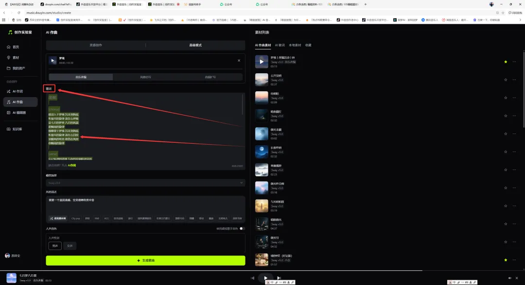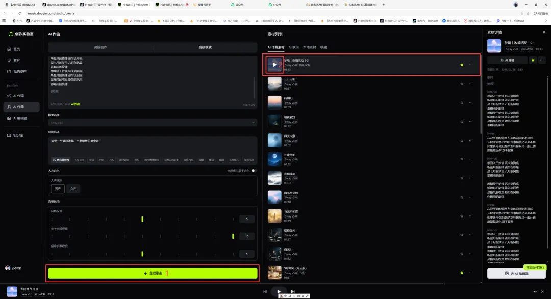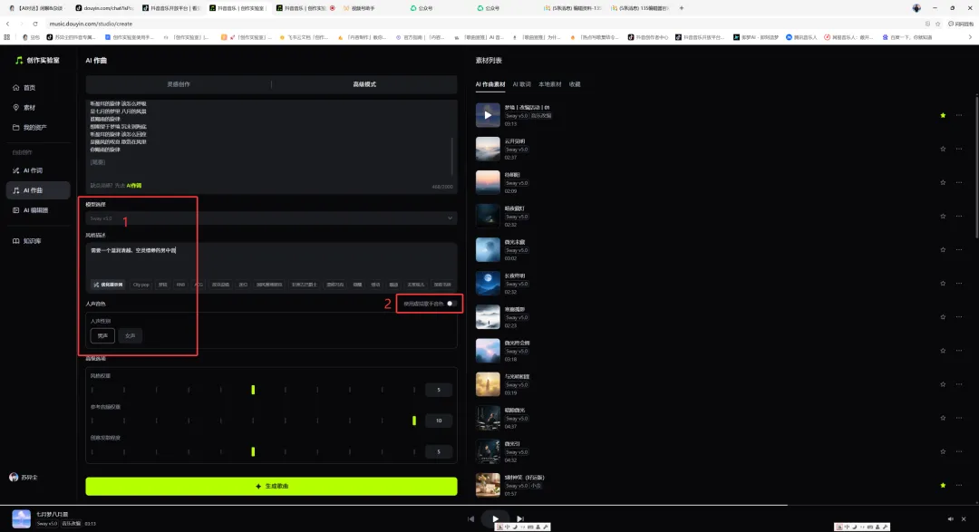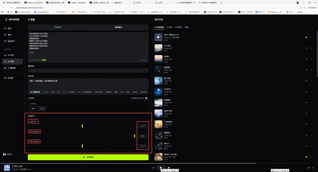 按照步骤五配置完可点击“生成歌曲”
