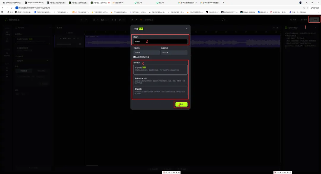 3,选择你需要的模式后即可“导出”成品歌曲音频。