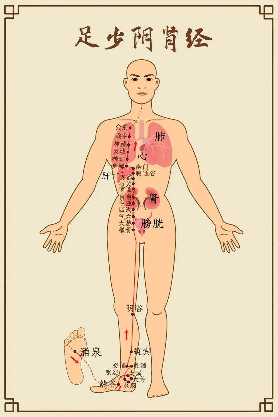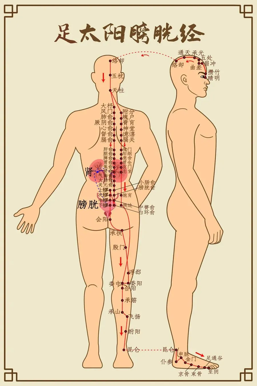 络肾正属膀胱腑,一支贯臀入腘传,