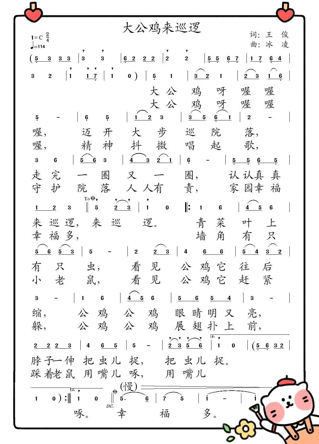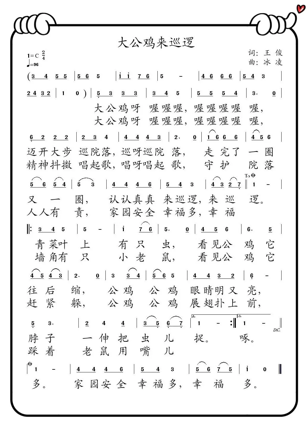 丰富的生活,五彩的歌|《大公鸡来巡逻》送给你,感受一下小朋友的快乐(曲谱两首)