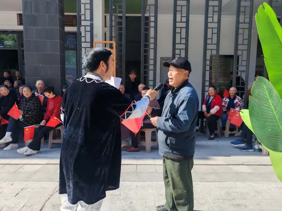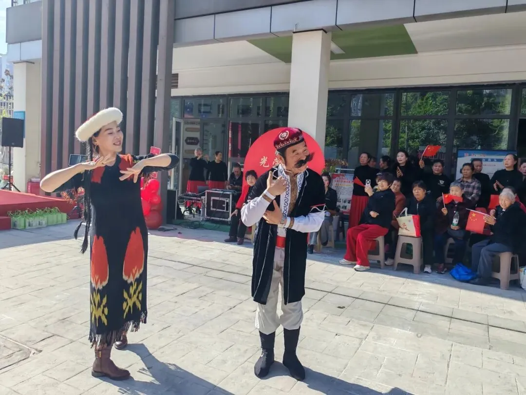 在主持人热情洋溢的开场致辞后,活动正式拉开帷幕。檀阴社区文艺队率先带来舞蹈《祖国你好》,以饱满的热情、优美的舞姿向祖国献上真挚祝福,瞬间点燃现场气氛;羊安器乐队龚老师独唱《我的故乡》,用悠扬的歌声诉说着对家乡的眷恋。随后,舞蹈《大阪城的姑娘》《雪山阿娇》《逛新城》轮番上演,或欢快灵动、或圣洁唯美,展现出浓郁的民族风情与新时代的美好风貌;小品《洪湖赤卫队》重温革命先辈的热血岁月,红色记忆直抵人心;羊安器乐队的《红歌连奏》旋律铿锵,徐老师独唱的《边疆处处赛江南》描绘出祖国边疆的壮美风光,经典红歌让现场观众沉浸在红色情怀之中。