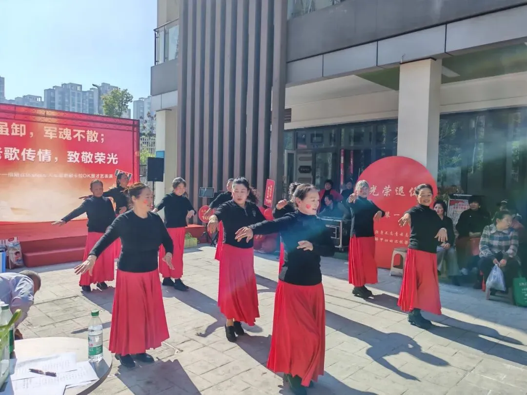 本次活动中,退役军人及家属成为舞台上的耀眼主角,纷纷登台一展风采。军人代表张琪君演唱《说句心里话》,质朴的歌声唱出了军人的家国情怀;军人家属白秀芳带来《陪你牵手走天涯》,温柔的旋律传递出温情与美好,另一位军人家属演唱的《打靶归来》节奏明快,唤起军旅记忆;军人妈妈唱响《红梅战》,歌声铿锵有力,尽显巾帼风采;退伍老兵演唱《狂起革命枪》,字字句句饱含着军人的热血与担当,赢得现场阵阵掌声。活动最后,檀阴社区文艺队以舞蹈《没有共产党就没有新中国》收尾,激昂的旋律、整齐的舞步,表达了对中国共产党的衷心赞颂,将现场气氛推向高潮。