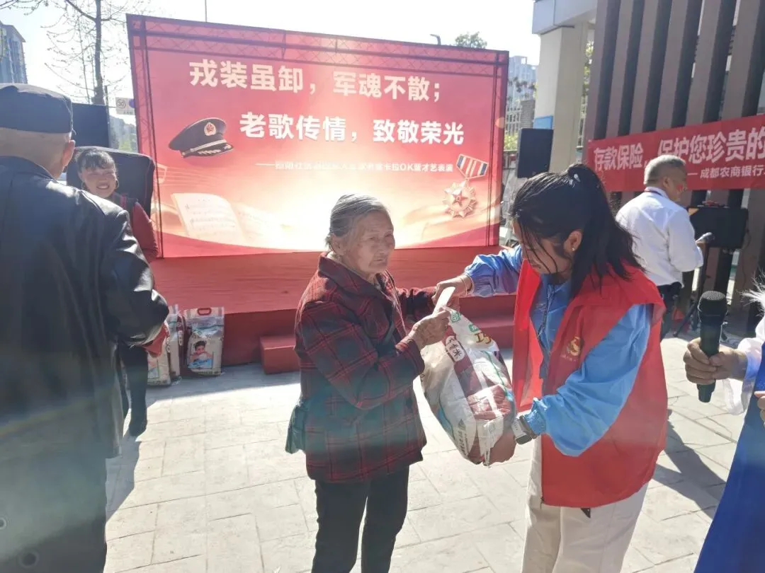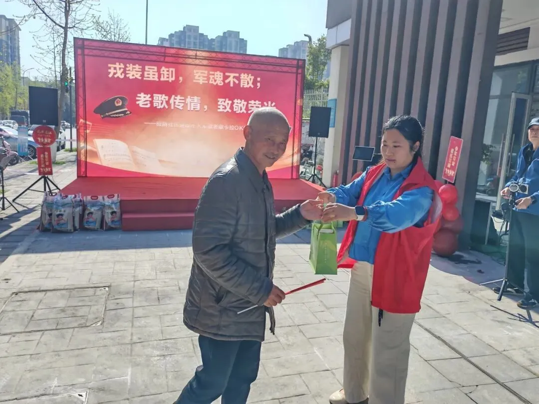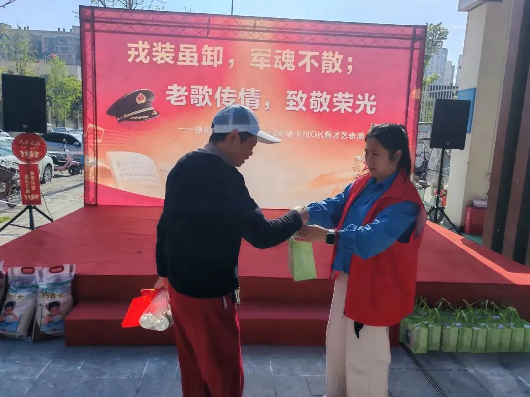 活动过程中还设置了趣味问答环节,主持人围绕军旅知识、经典军歌、提出问题,现场退伍军人及观众踊跃举手抢答,答对者获得精美礼包,既增添了活动的互动性与趣味性,又进一步加深了大家对军旅知识的了解。活动尾声,工作人员为军人及军人家属演出者颁发了纪念奖品(大米一袋),感谢大家的精彩演绎。