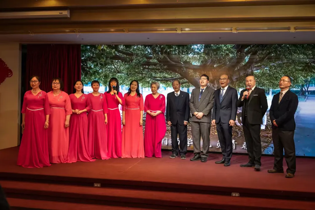 值得关注的是,年逾九旬的卢曼德师姐伉俪也登台参与合唱。他们对母校的深厚情感与积极向上的人生姿态,深深感染了在场的每一位校友,也为整场演出增添了格外动人的一笔。