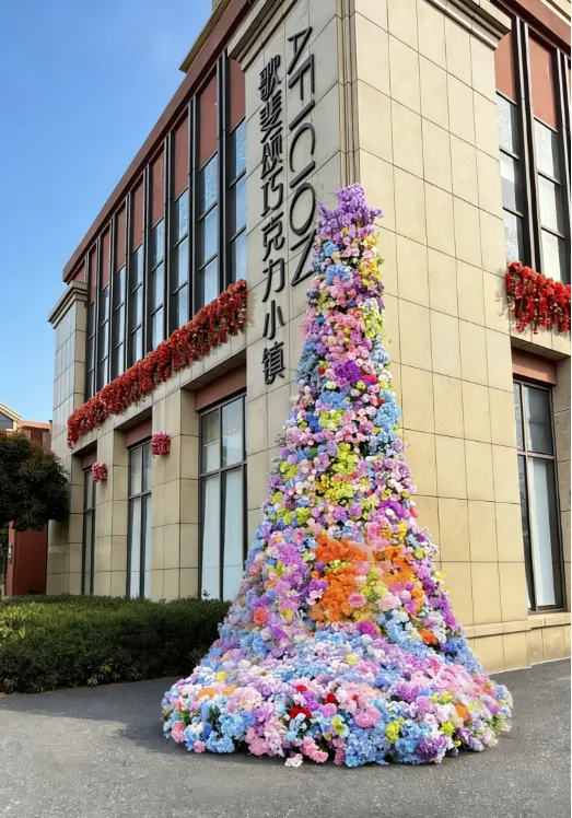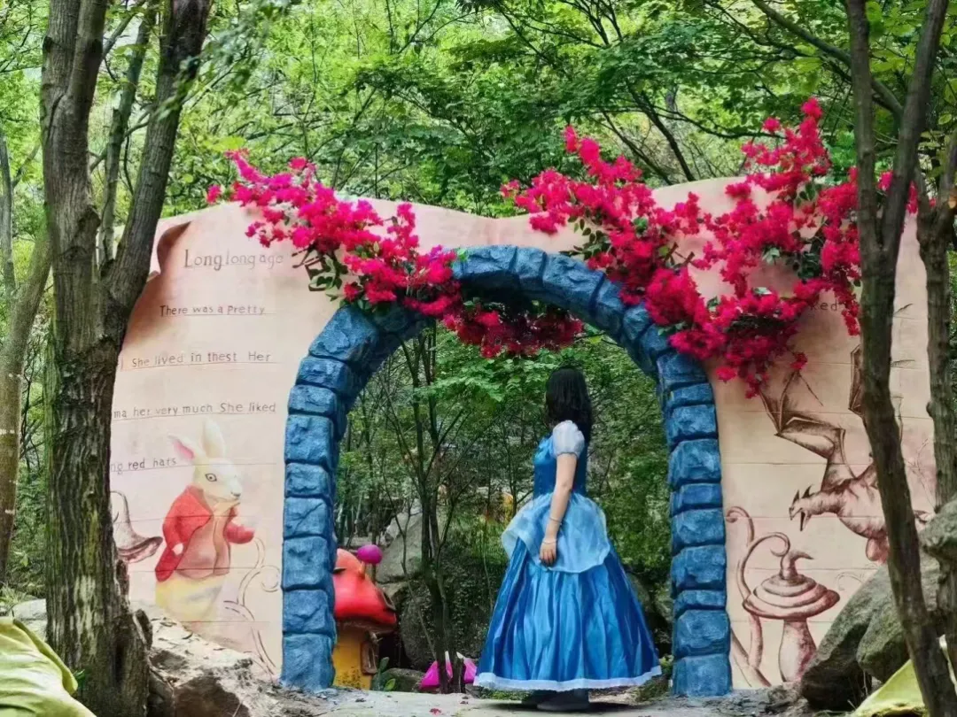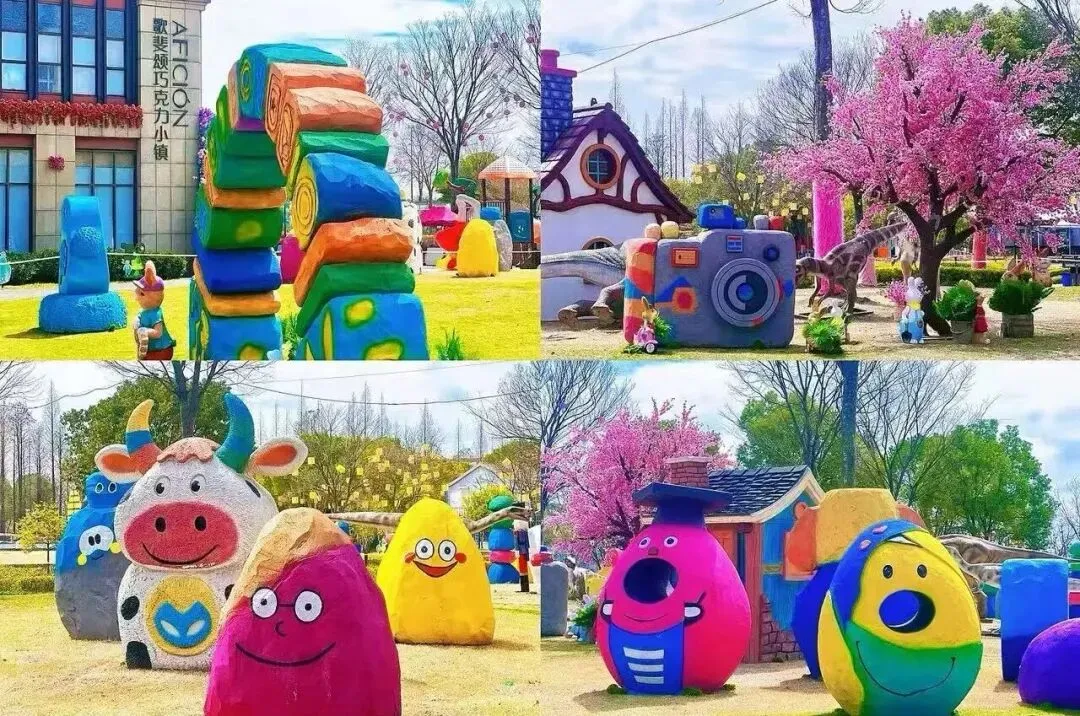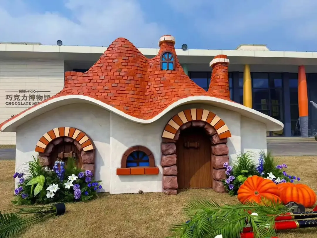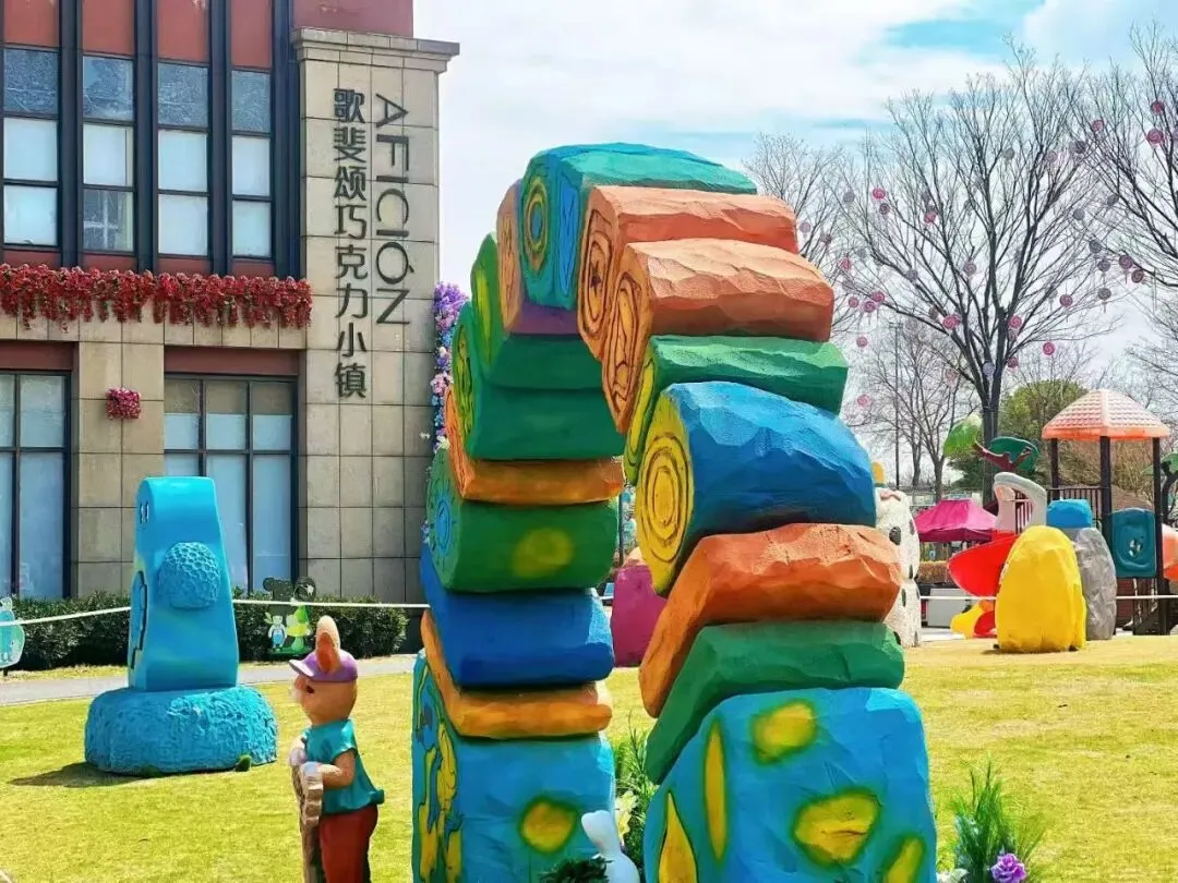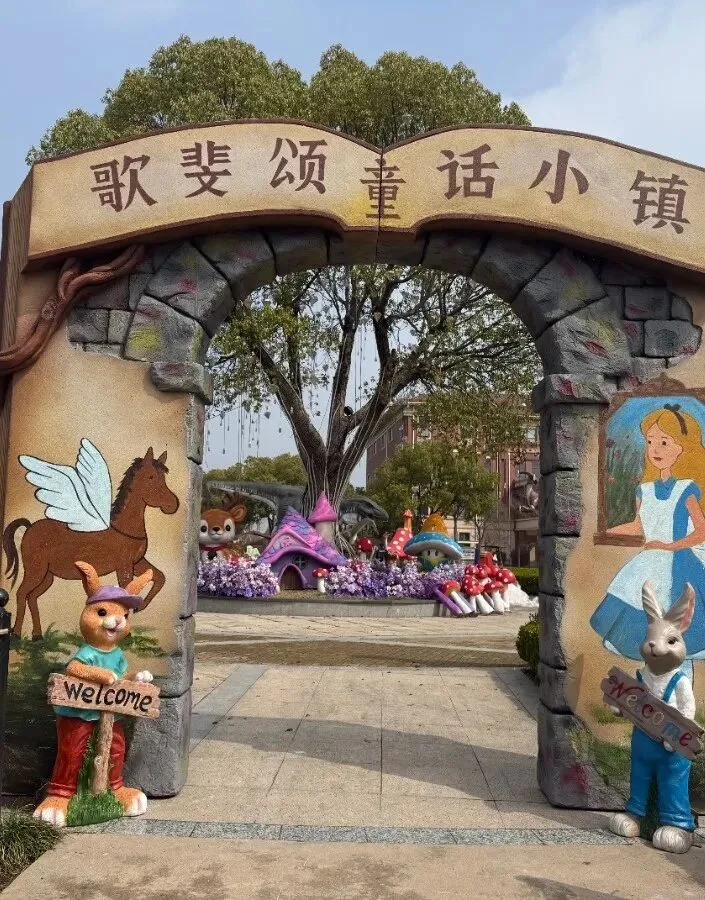 当你踏入歌斐颂巧克力小镇,一座多巴胺风格的主题门头映入眼帘——圆润的拱门、藤蔓缠绕的装饰、缤纷花艺,仿佛瞬间穿越进童话书的扉页。欢迎来到快乐王国!