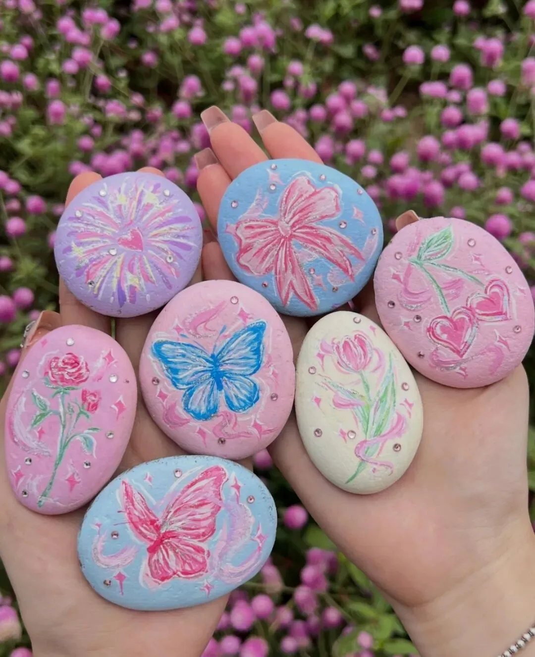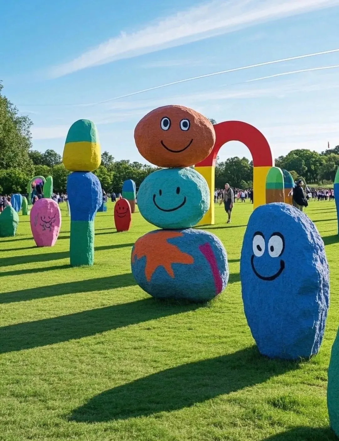 在DIY摊位,我们准备了各种形状的光滑河石——有圆滚滚的,有扁扁的,有像小山的,有像心形的。孩子们可以挑选最喜欢的一块,用画笔蘸上五彩的颜料,为它“穿上”独一无二的外衣。