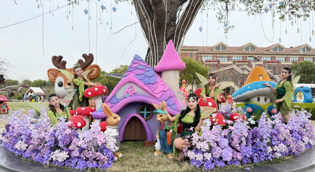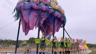 身着闪闪发光的精灵裙,头戴花环的精灵舞者们从花丛中轻盈走出,在阳光下翩翩起舞。她们会牵着小朋友的手一起转圈,会在你面前突然定格摆出可爱的姿势,还会悄悄在你耳边送上春天的祝福。每一个舞步都轻盈如梦,仿佛真的从童话书里走了出来。