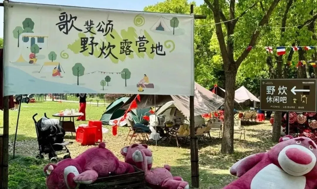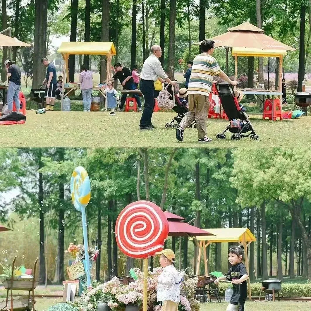 在草坪上的天幕帐篷露营区,你可以小憩、晒太阳、看孩子奔跑,享受春日最惬意的时光。