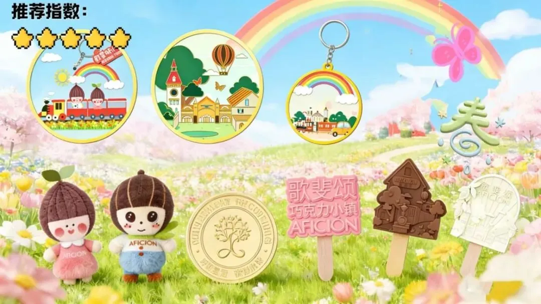 如果你想把春天的味道带回家,可以选择歌斐颂限定巧克力礼盒——巧克力上印着童话小镇的图案,每一颗都是甜蜜的纪念。还有童话绘本、精灵发箍、小火车钥匙扣、卡通冰箱贴、可可精灵玩偶……每一件都精心设计,每一件都藏着童话的秘密。
