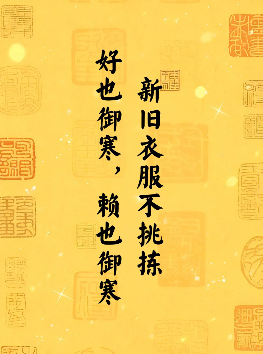 5. 新旧衣服不挑拣,好也御寒,赖也御寒