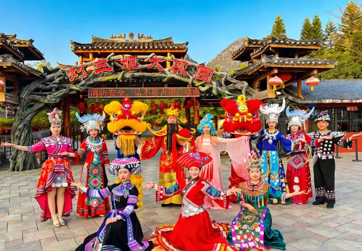 在这里游客可以零距离领略刘三姐文化
