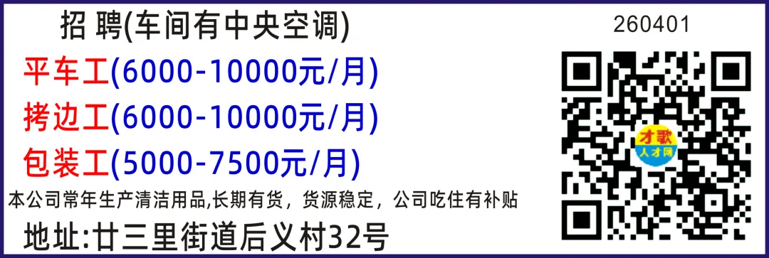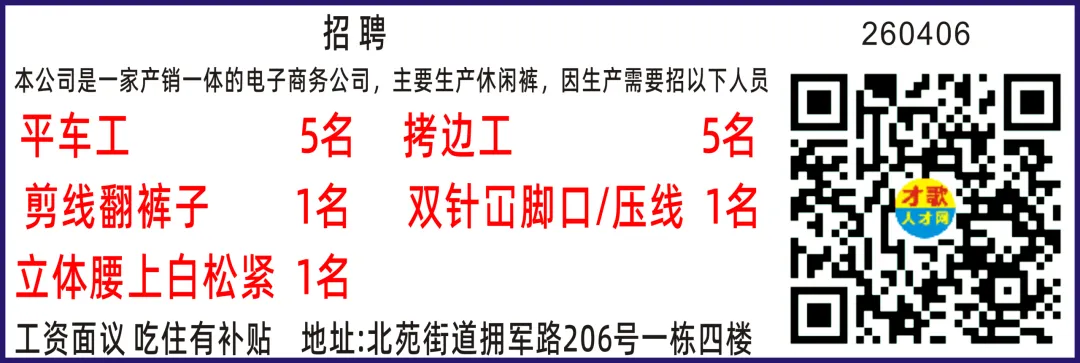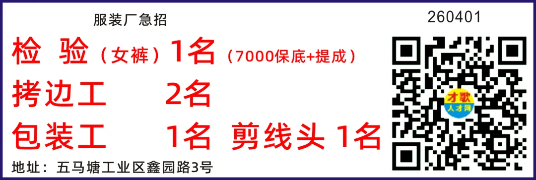 后宅服装厂招管理双针工平车工拷03-28