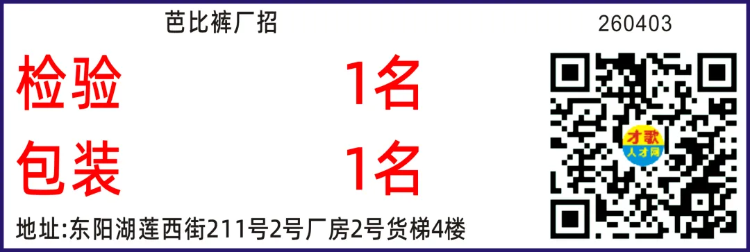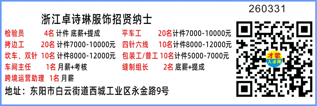 东阳招聘:平车4名长期或临时拷边203-28