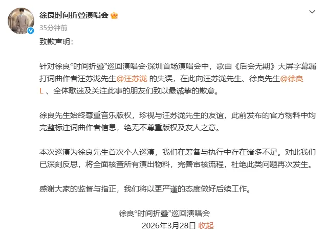 公开资料显示,徐良,1987年生于山东青岛,中国内地男歌手、音乐人,代表作有《坏女孩》《七秒钟的记忆》《客官不可以》《我会等》等。