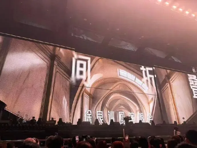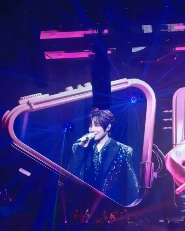 徐良在爱心造型舞台装置前演唱,灯光氛围感拉满