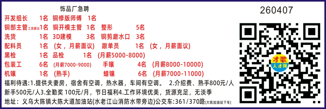义乌市夏旺饰品有限公司是一家专业生产、研发和销售一体的亚克力饰品厂家,因生产需要现招聘以下人员: