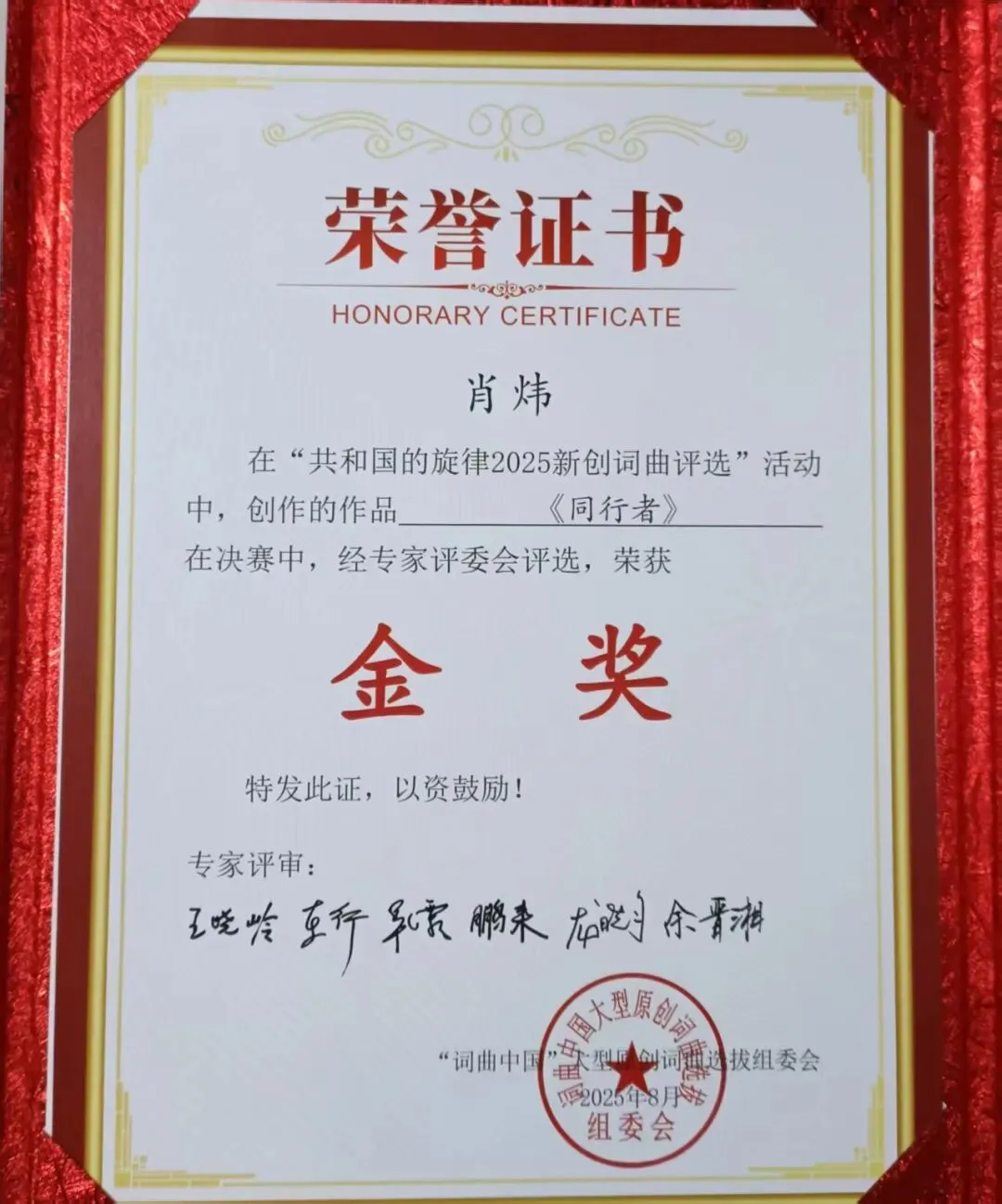 从最初的3000余首原创作品报名,到之后1500余首作品进入复赛环节,再到160余首作品晋级到决赛,通过以中国著名词曲作家,著名剧作家和来自中国少数民族声乐学会、中国国际教育电视台文艺中心,中央民族大学音乐学院、中国音乐家协会的业内权威专家评委,以直播评选点评的方式决出金、银、铜奖,最终包括《同行者》在内的16首歌曲,斩获此次大赛金奖的殊荣。
