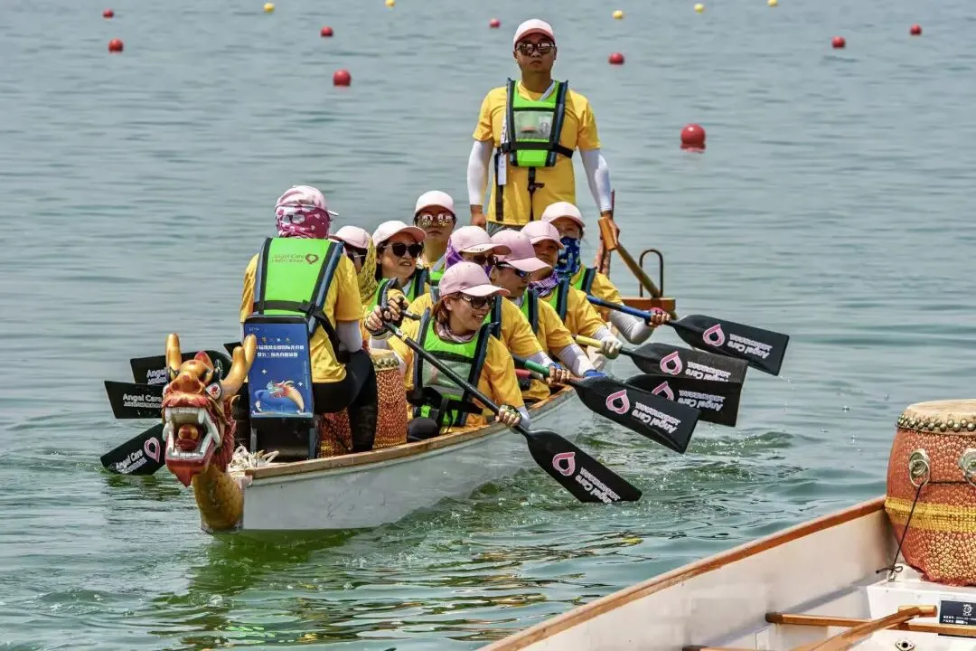 而上海粉红天使带来的不仅是女性的睿智雅姝,还有化茧成蝶的天使力量!上海粉红天使成立了属于自己的龙舟队,前往世界各地参加比赛,就在2025年端午节,央视频道现场直播了上海粉红天使龙舟队的比赛实况,看到姐妹们在鼓声如雷,桨影翻飞的金鸡湖中,无惧对手,她们精诚合作,劈波斩浪,奋楫前行的高昂状态,令隔着屏幕的我被深深震撼,那不仅仅是比赛,是上海粉红天使在碧波上的淋漓挥洒,也是力与美的交响。