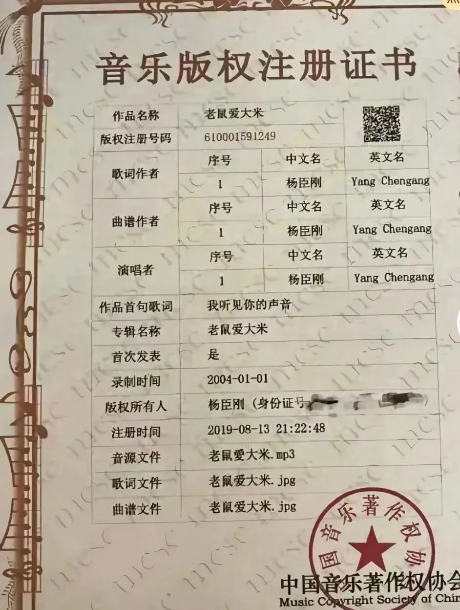 国家版权局的两份登记证书(编号:国作登字 - 2020-B-01000952、国作登字 - 2020-S-00969562),还有中国音乐著作权协会的注册证(注册号:610001591249),都能证明权属。
