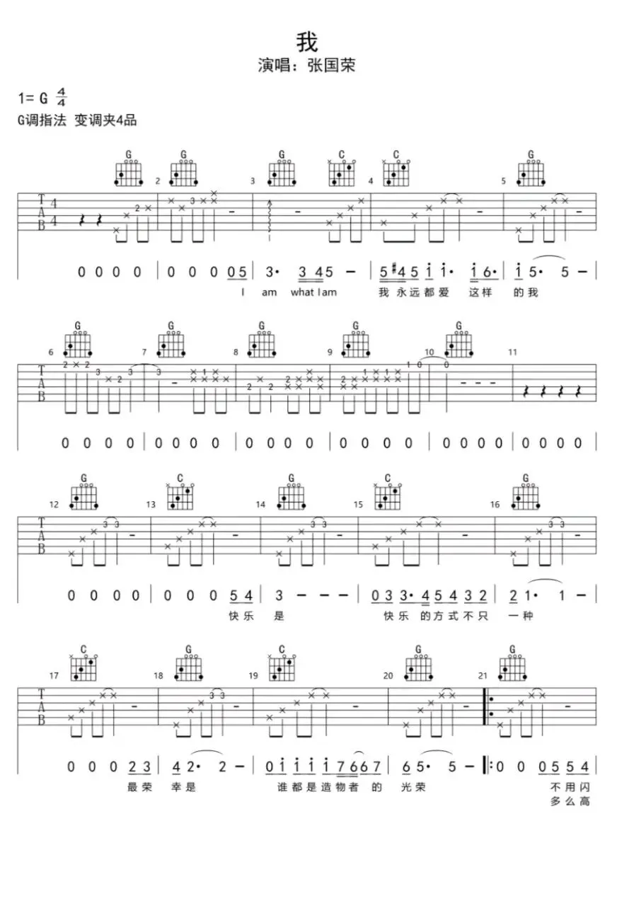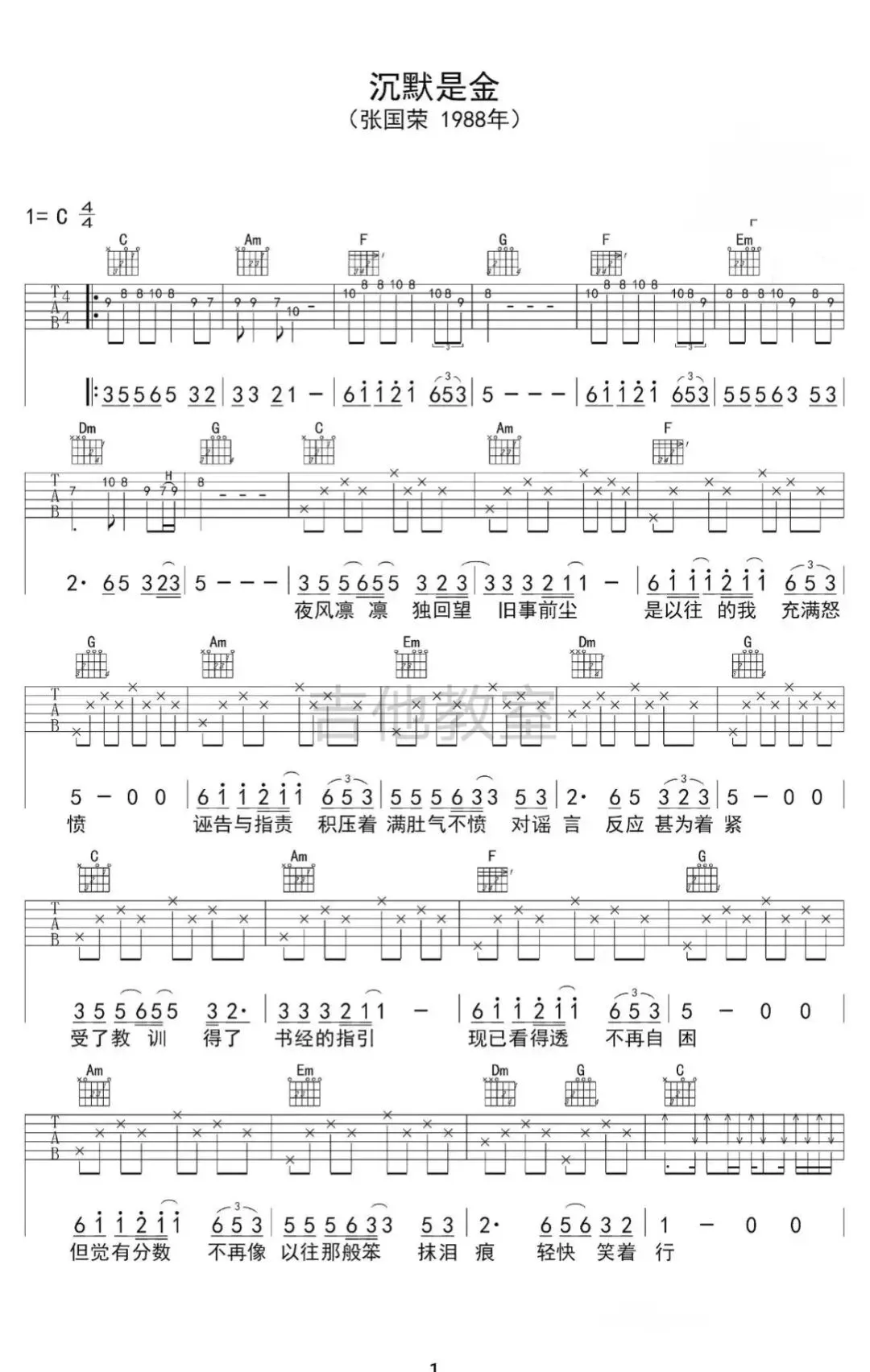 张国荣《沉默是金》吉他谱