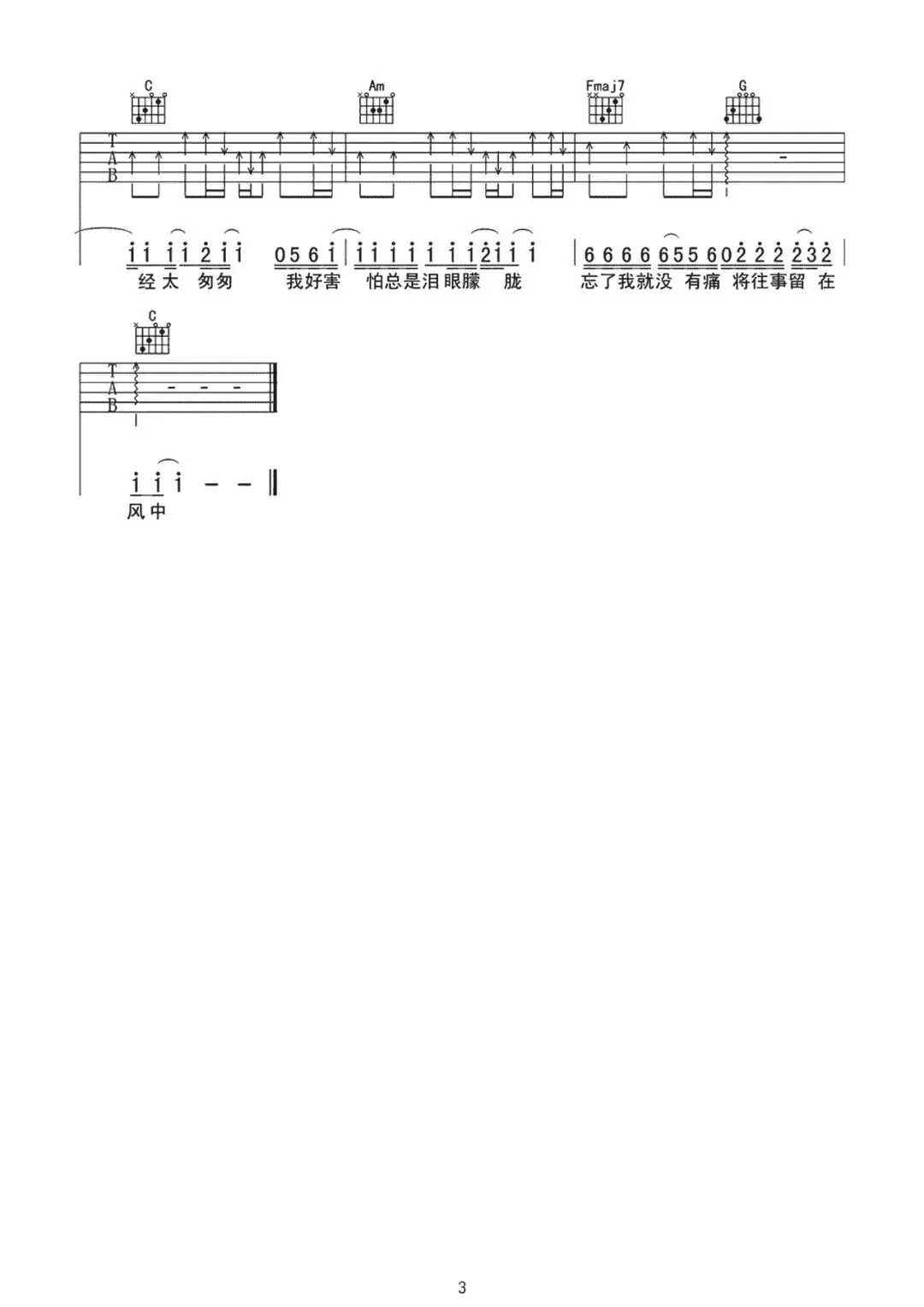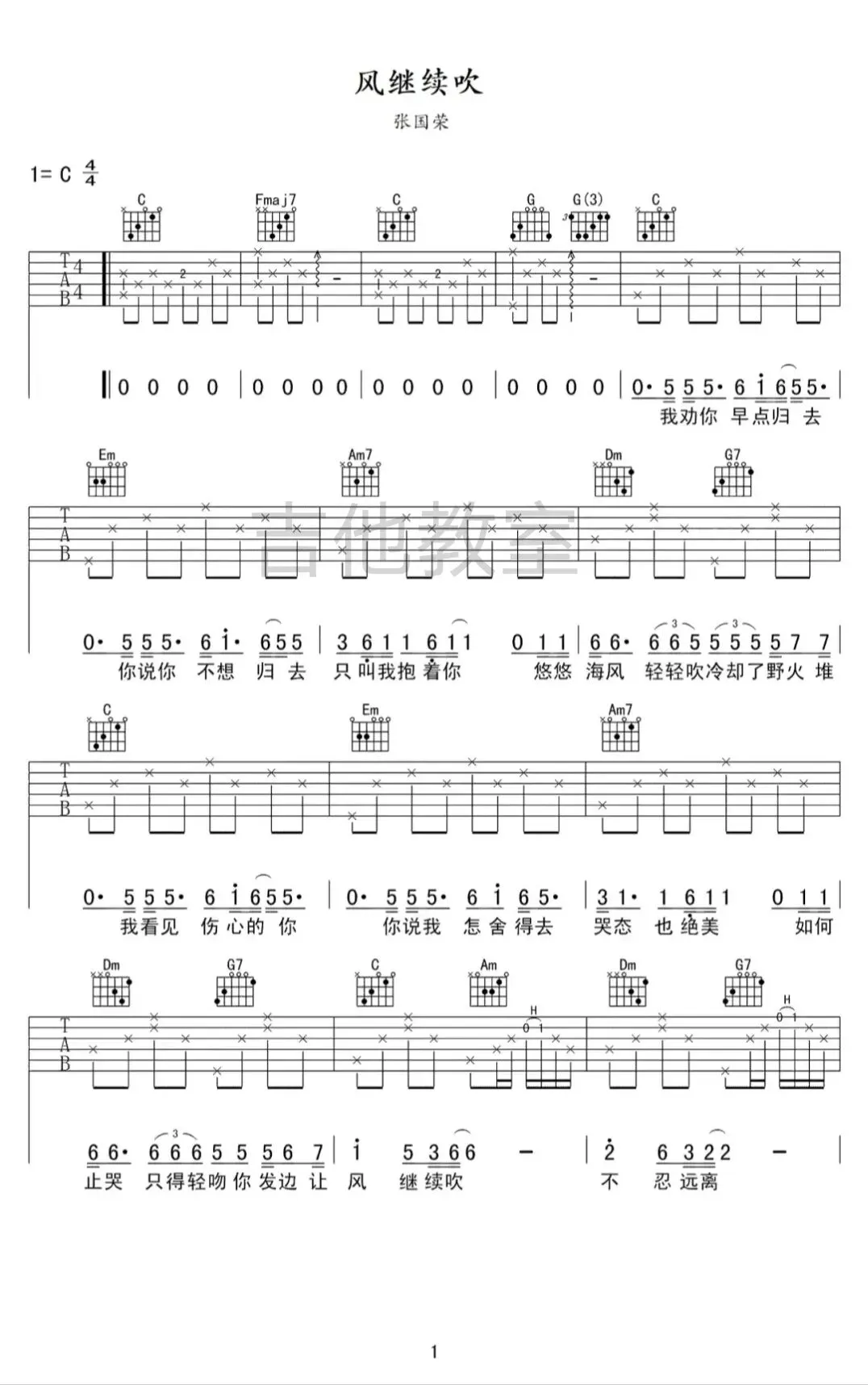 张国荣《风继续吹》吉他谱