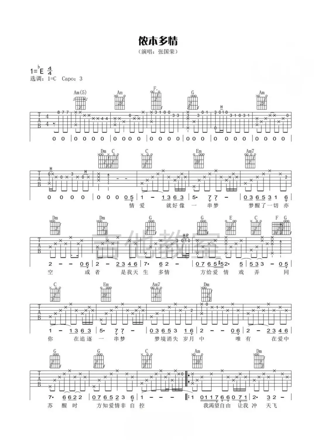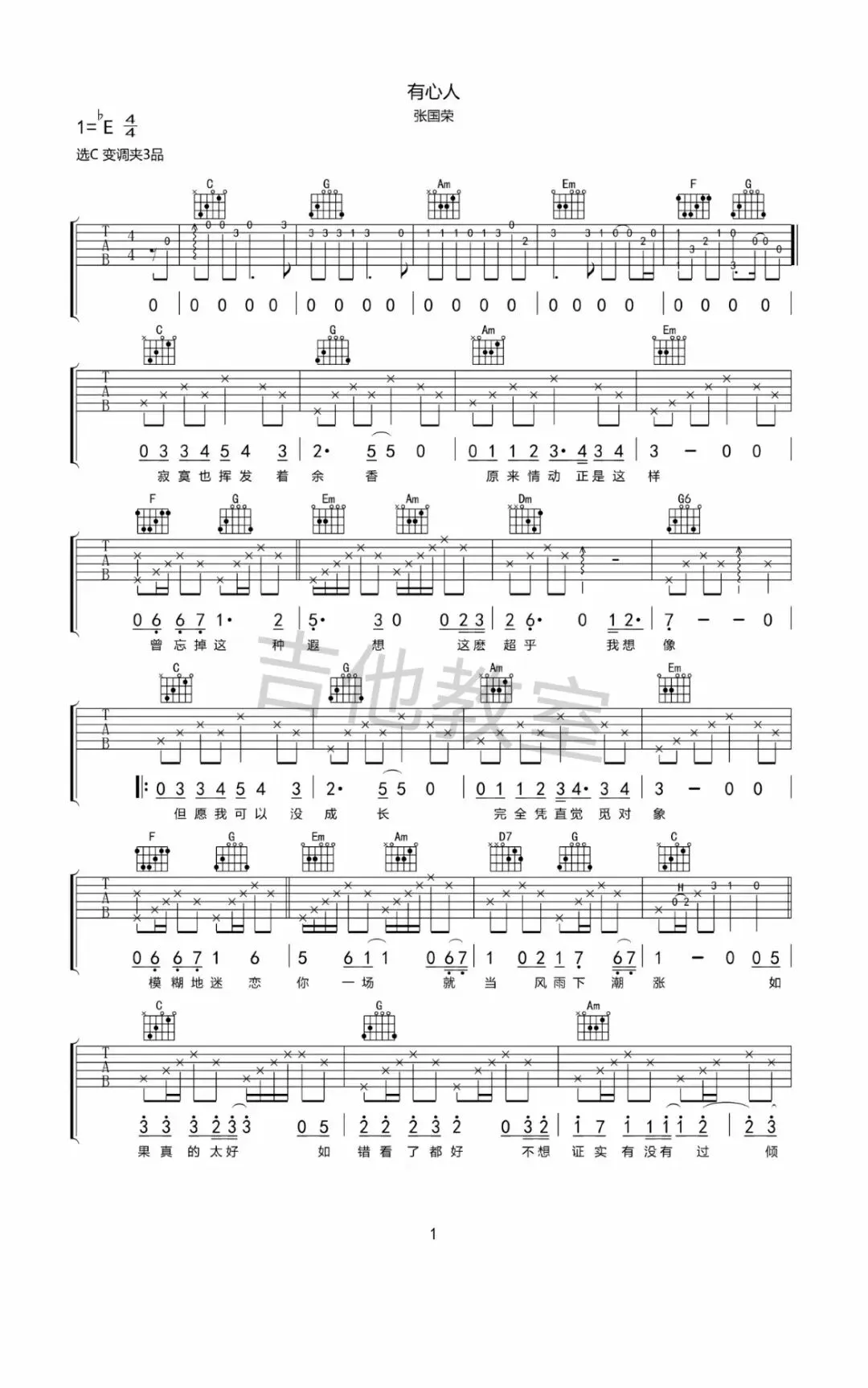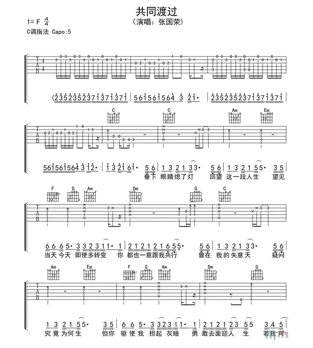 张国荣《有谁共鸣》吉他谱