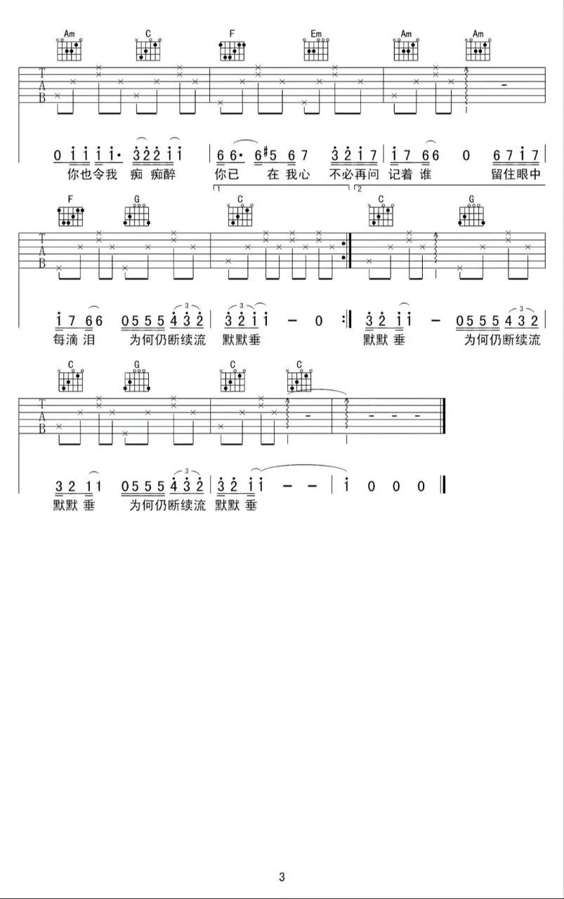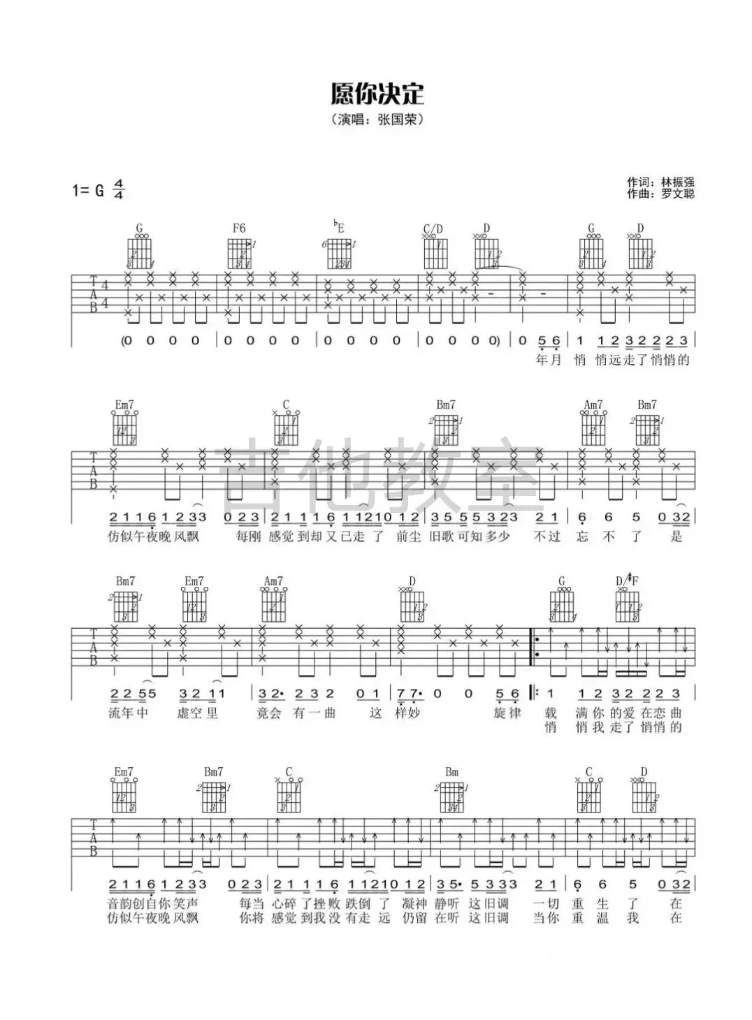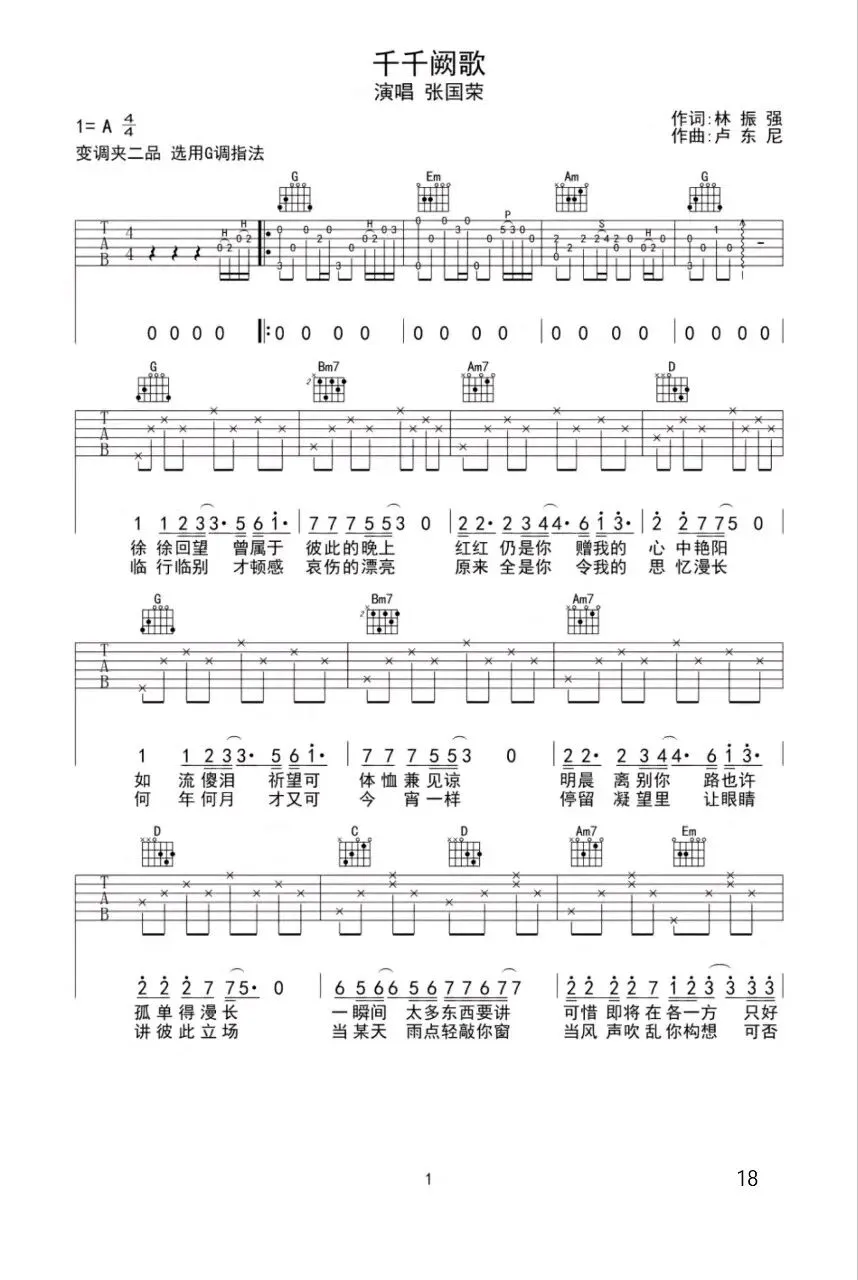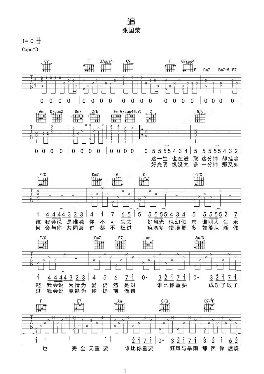张国荣《有谁共鸣》吉他谱