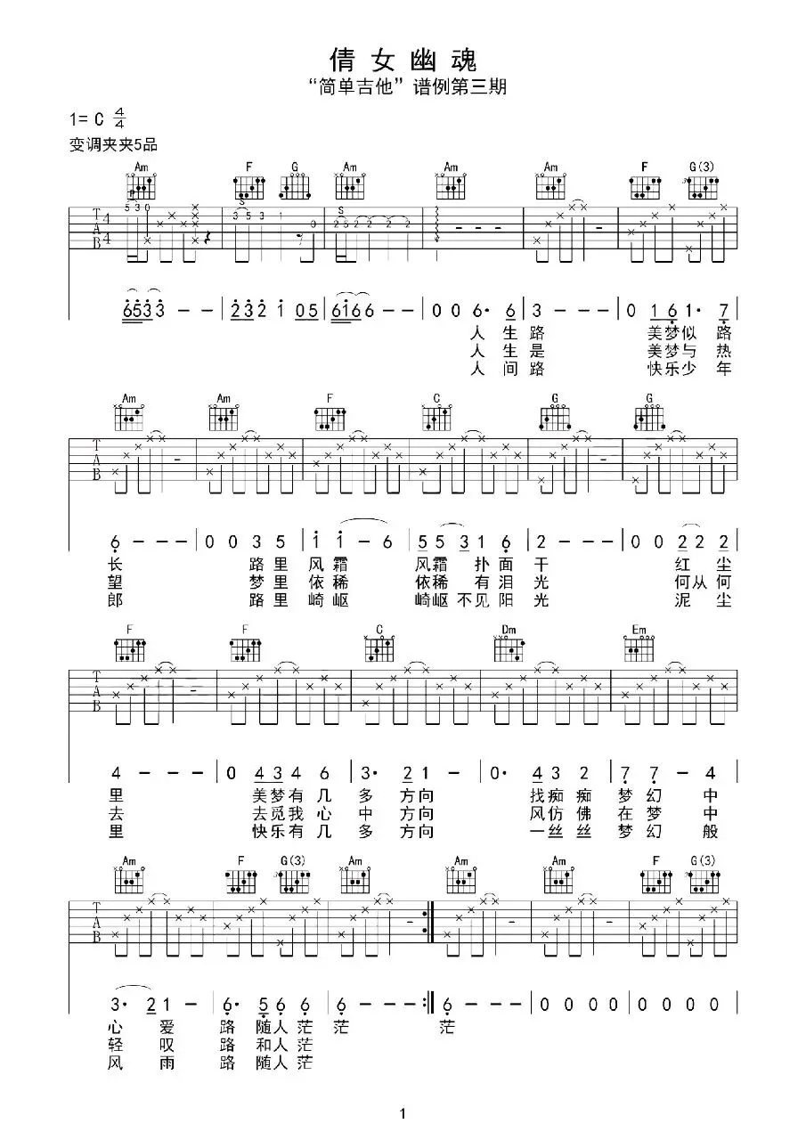 张国荣《倩女幽魂》吉他谱
