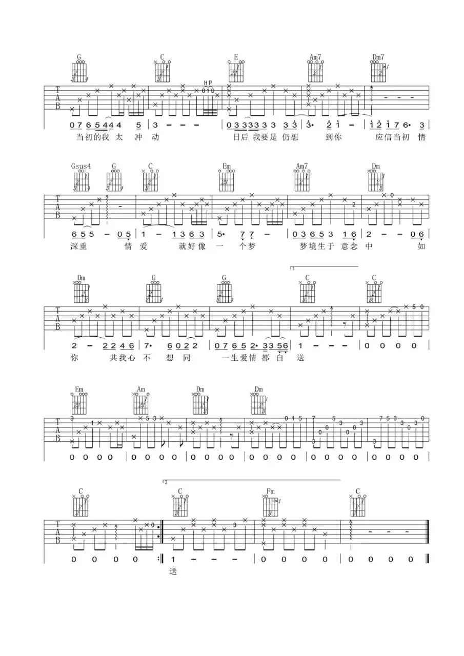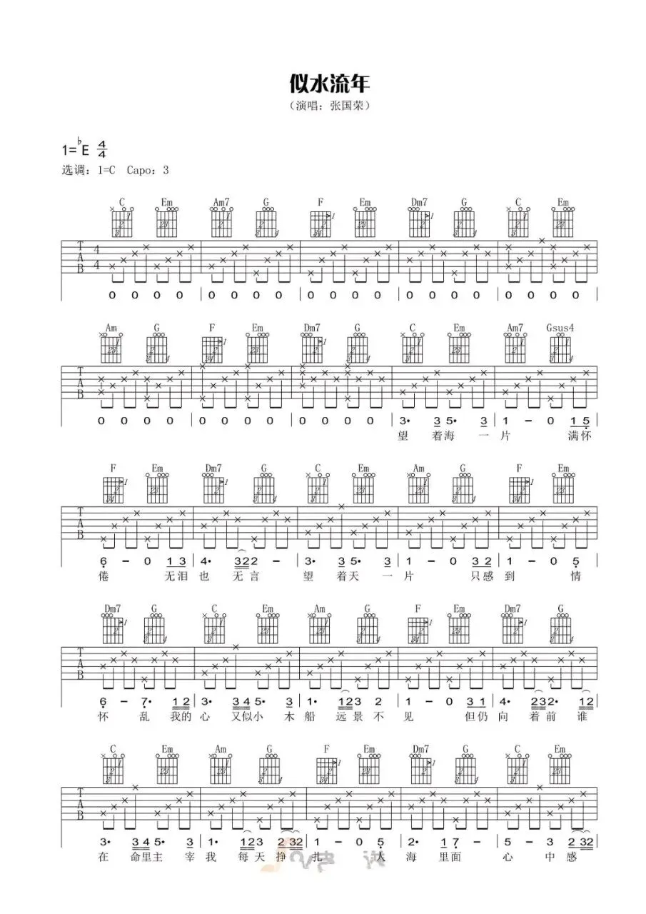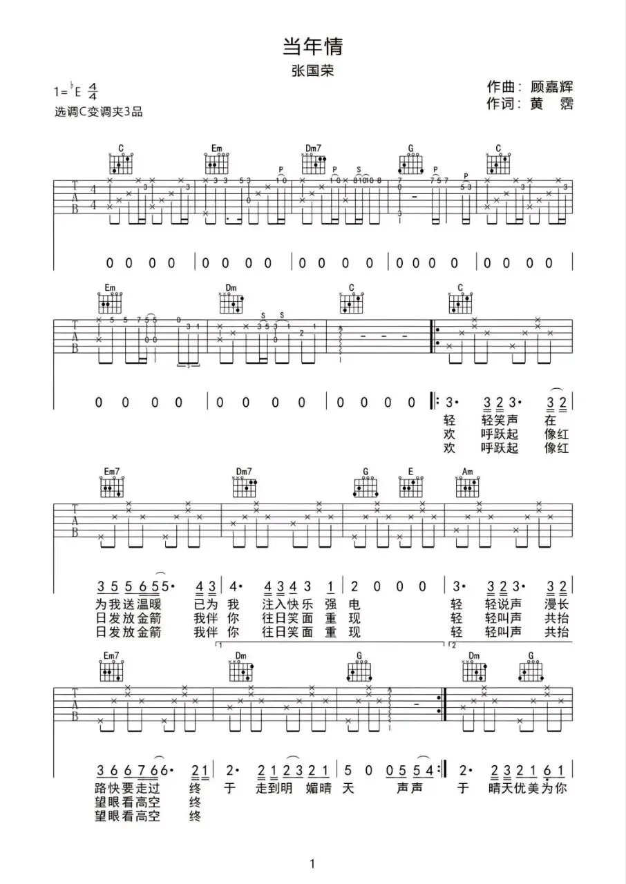 张国荣《当年情》吉他谱