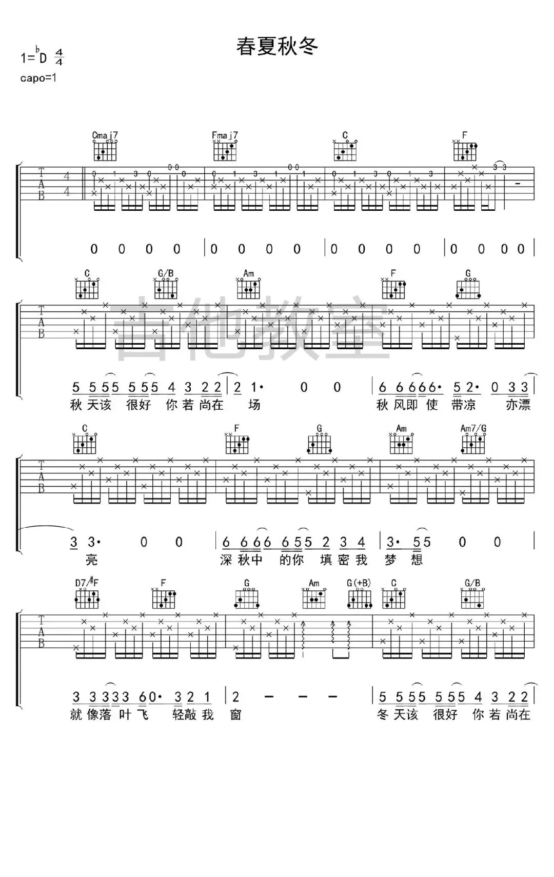 张国荣《春夏秋冬》吉他谱