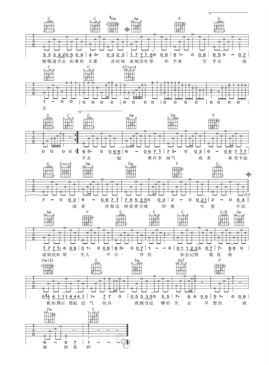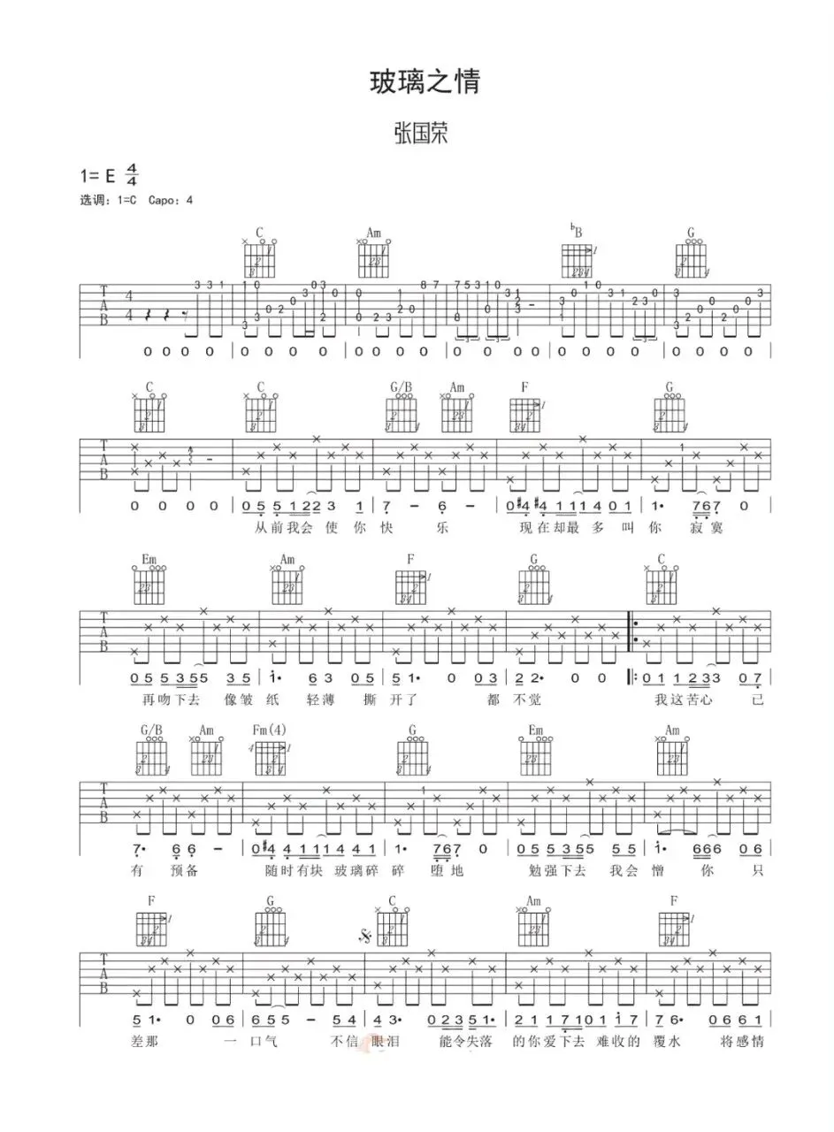 张国荣《玻璃之情》吉他谱