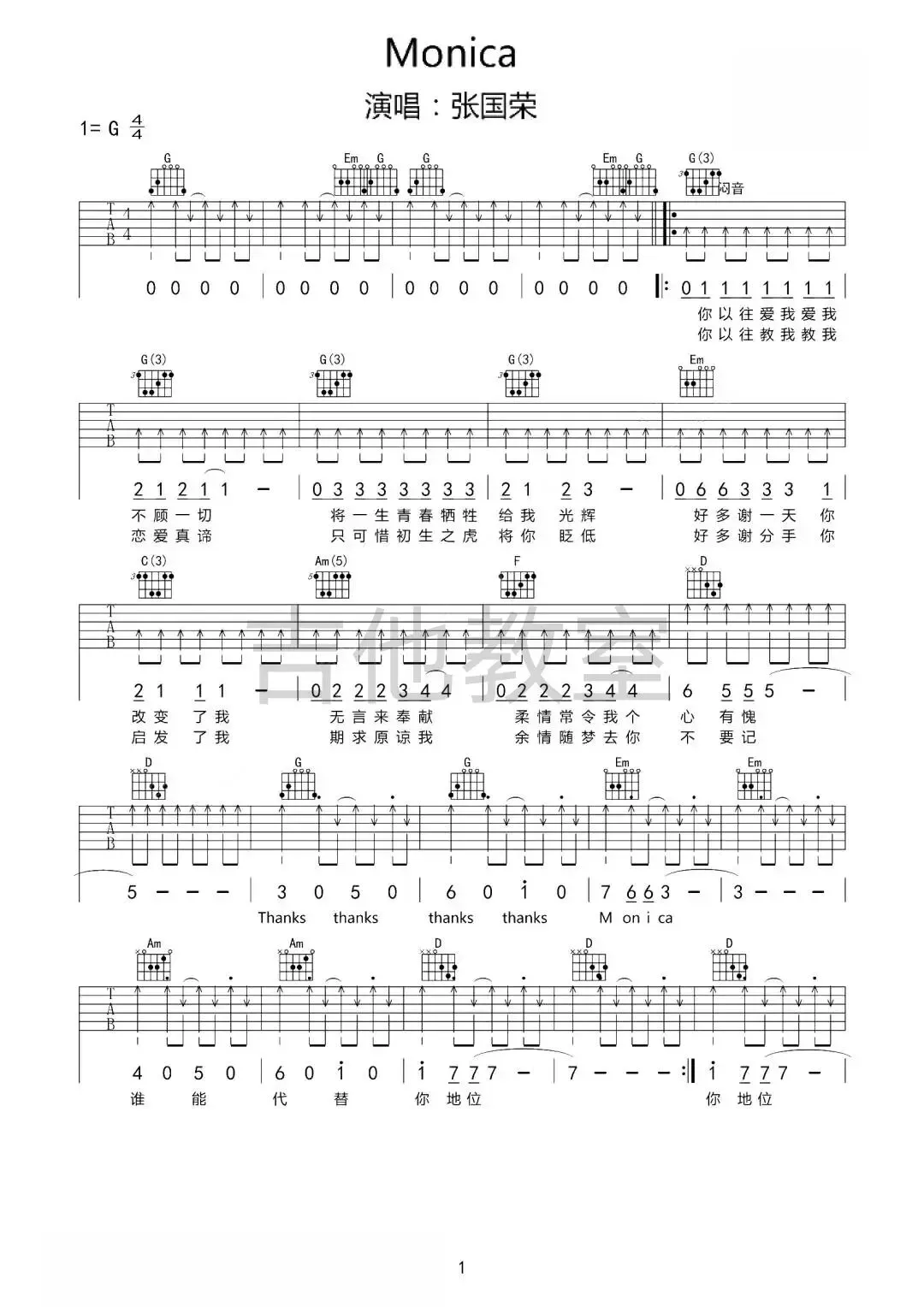 张国荣《Monica》吉他谱