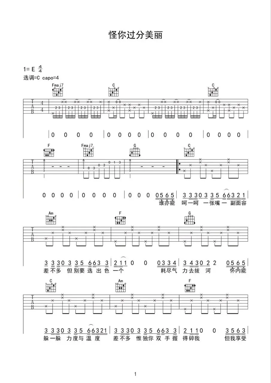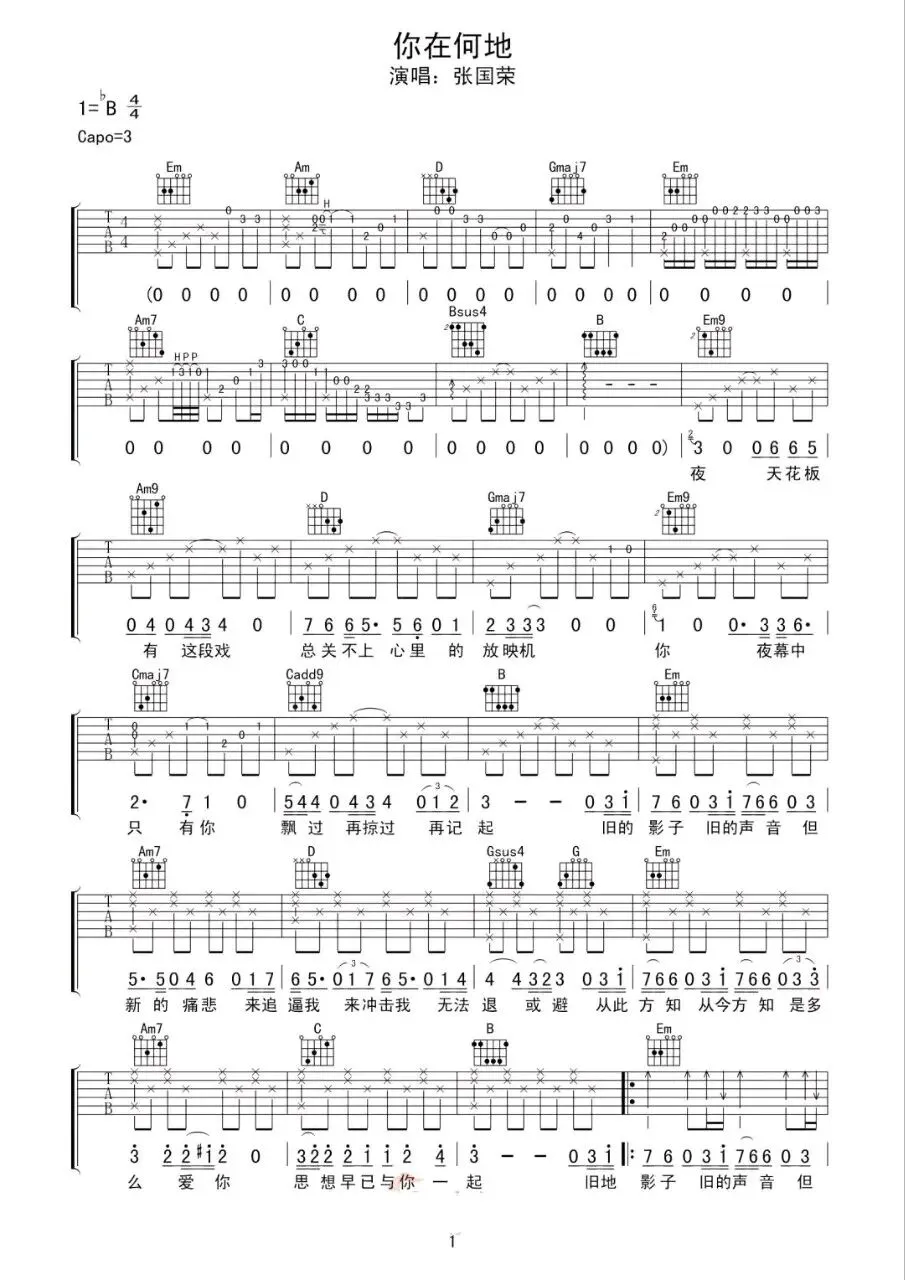 《你在何地》吉他谱