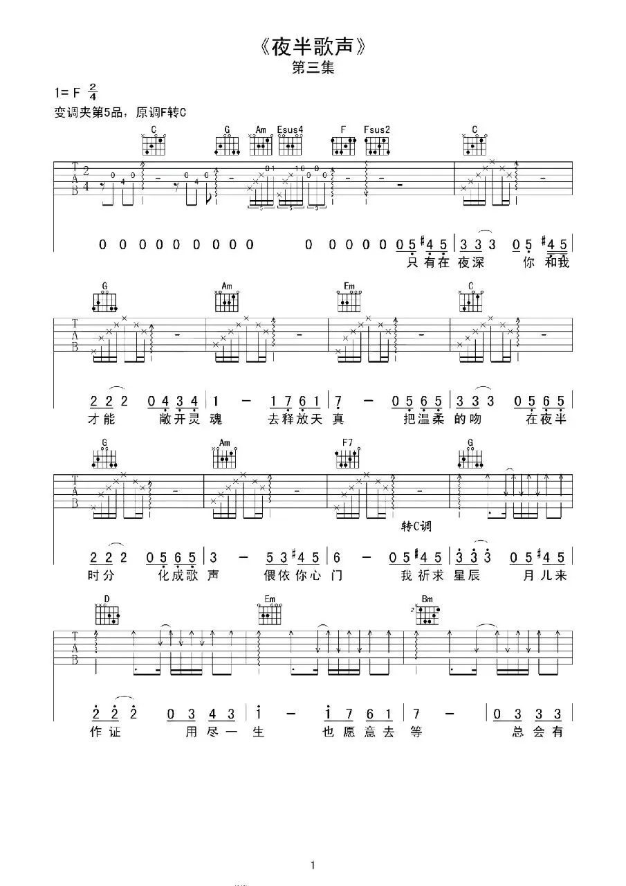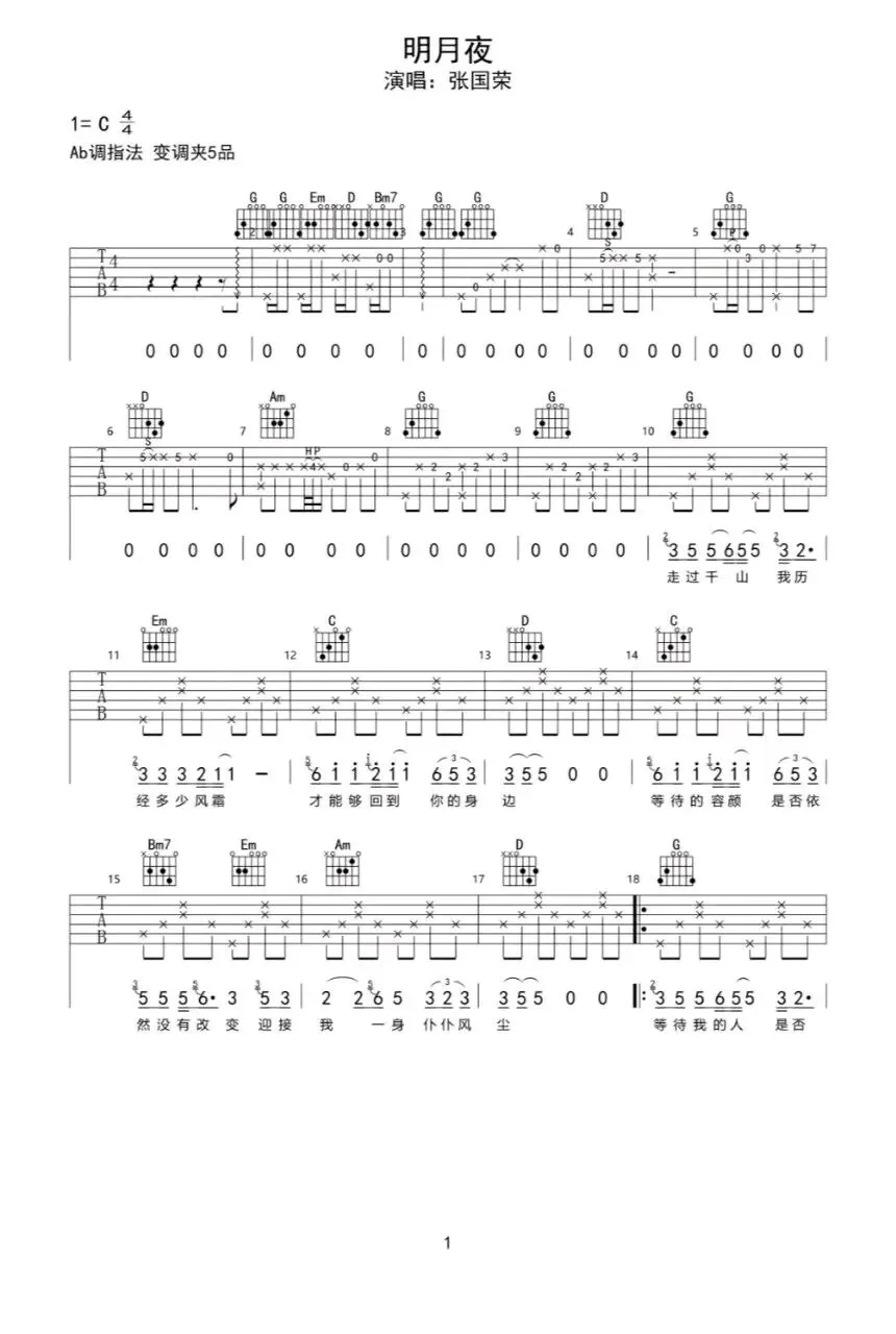 张国荣《明月夜》吉他谱