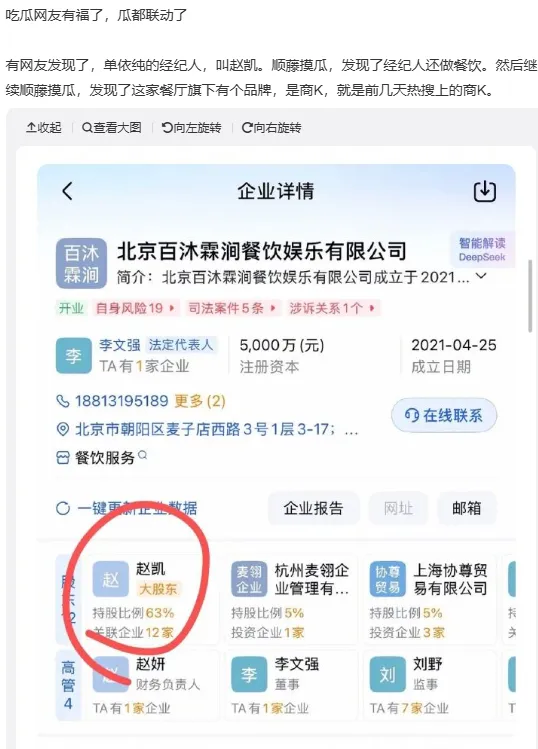 单依纯的经纪人还做着餐饮生意,顺藤摸瓜之下发现这家餐厅公司
