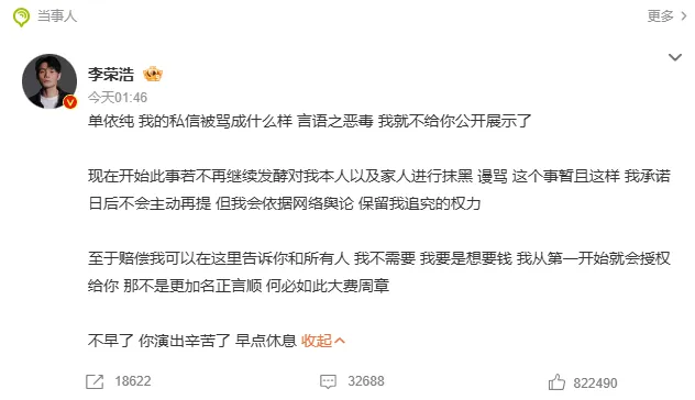 昨天李荣浩和单依纯的版权保卫战似乎已然落下帷幕