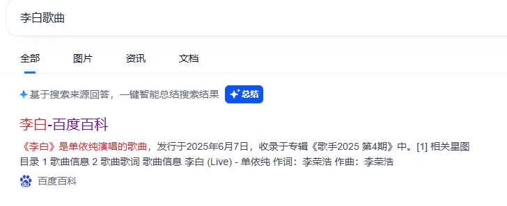 比如你现在搜索【李白歌曲】