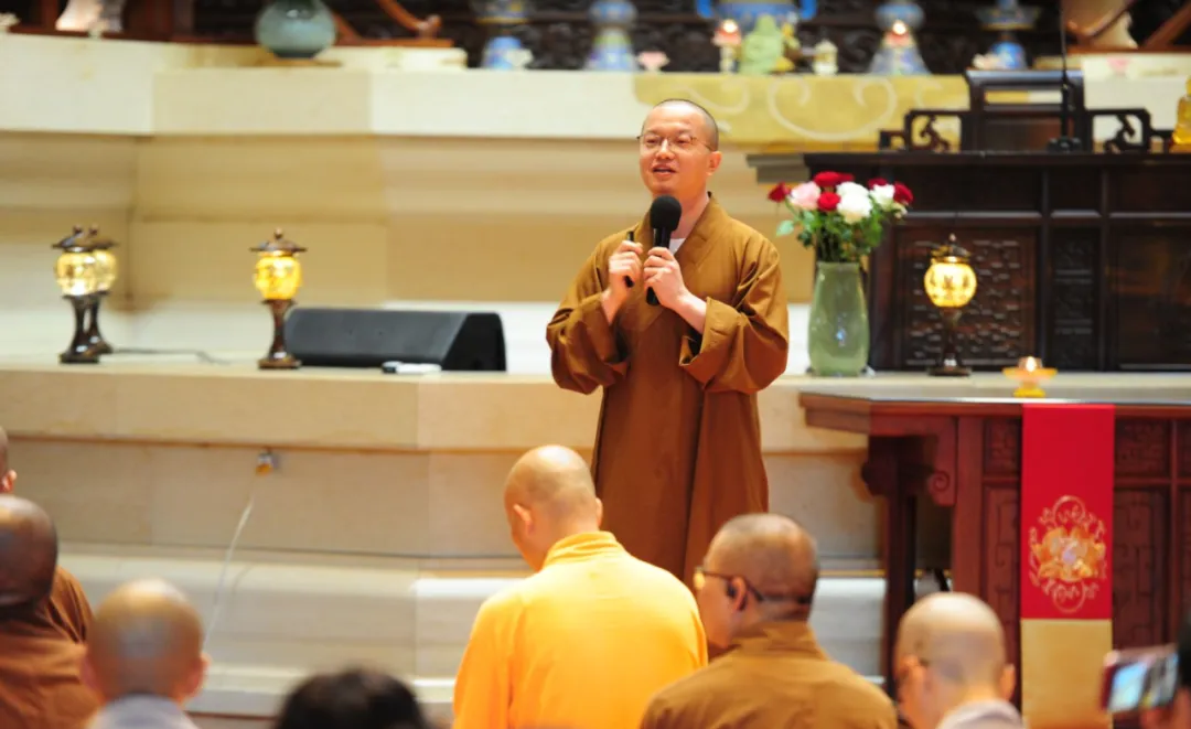安福寺监院则庄法师向大家概括介绍了安福寺十年内取得的各方面成绩。