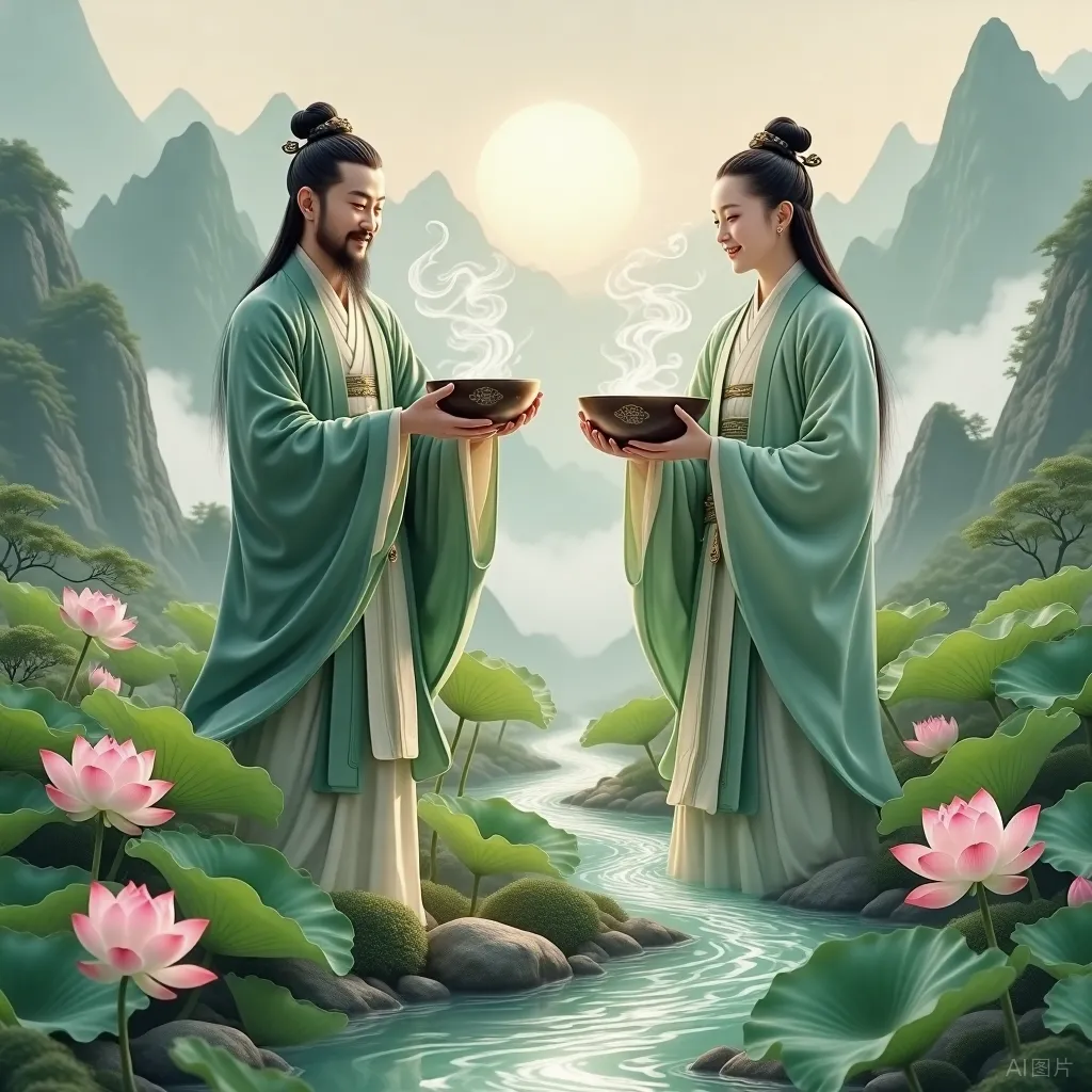 · 忘川:阴阳交界的涤滤之河:忘川是道教冥界“阴阳分界”的象征,河水能洗尽尘缘、净化魂魄。“渡我过忘川”,并非真入冥界,而是心灵层面的“过界”——从“爱恨情仇”的阳间执念,渡入“虚无清净”的道之境界。