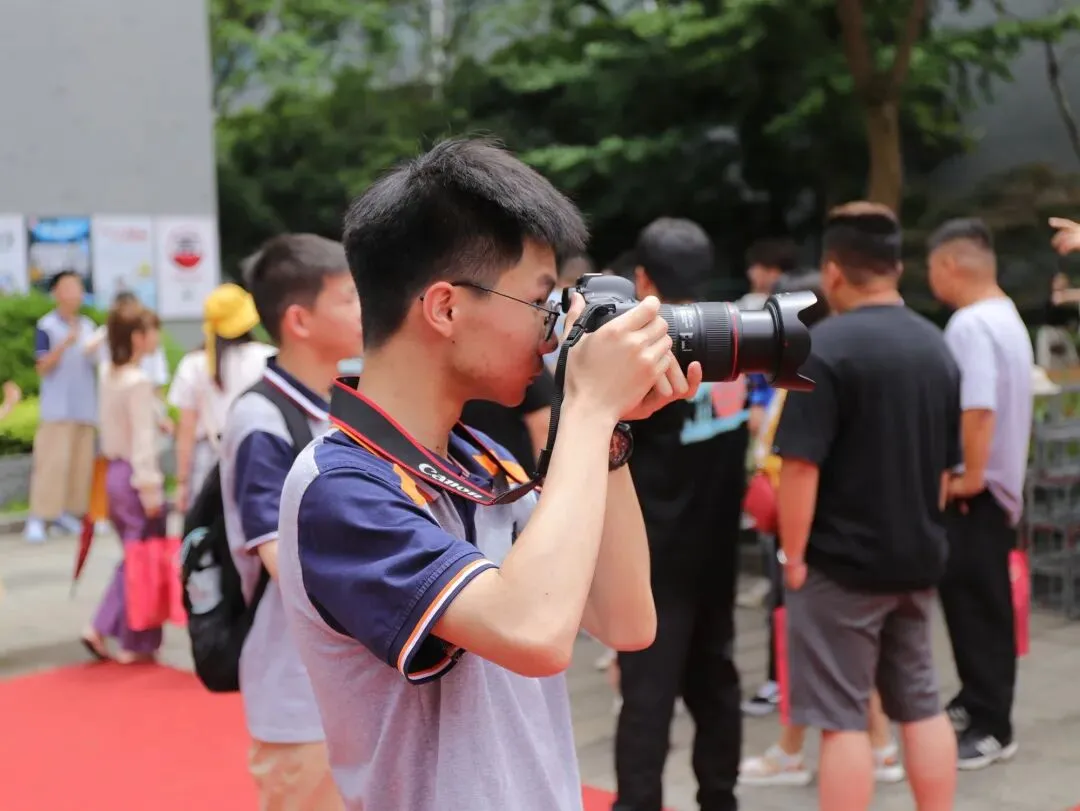摄影社社员正在对角