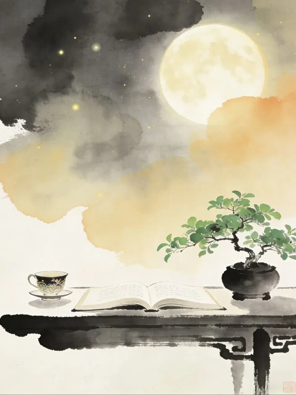 《水调歌头》的酒香酿了又酿,在轻柔的月光下,透过稀疏的枝条,略过层层冷气,悄悄地飘到了他的鼻尖。