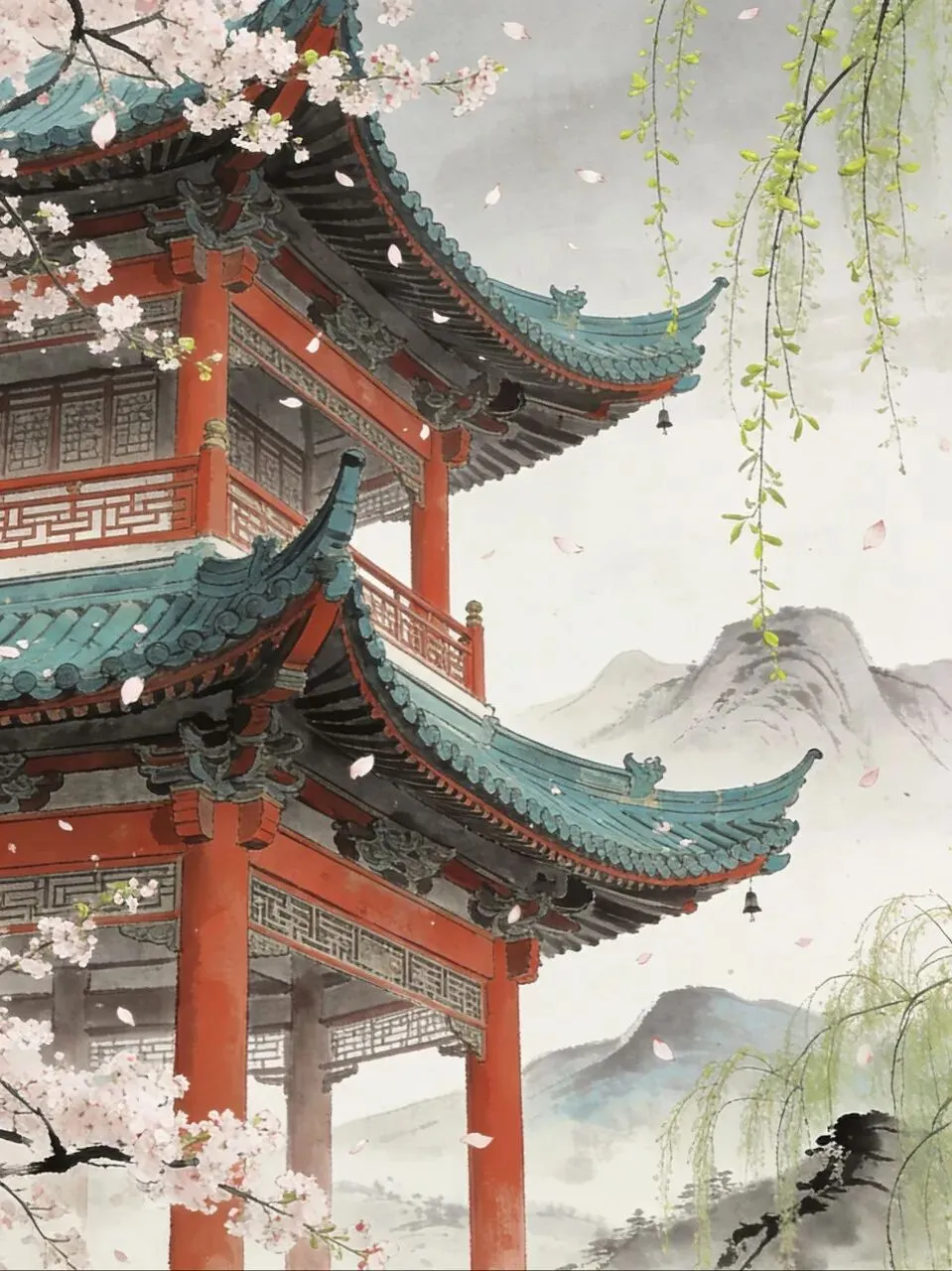 转过红色的楼阁,月色落在门窗的边角,这一夜又是难以入眠!