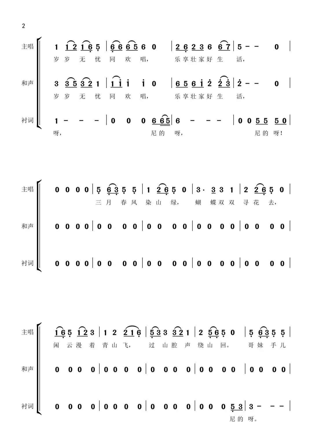 歌词里的“高山茶醇风含香,林间莺鸟欢歌扬”“手捧深情酿成酒,五色糯米饭敬知己”,皆是壮乡生活与民俗的真实写照。三月三的壮乡,山水皆有情,草木皆生歌,蜜蜂采花酿蜜,壮乡人以茶、酒、糯米饭等待客,这些细碎的美好,都是壮乡生活的底色,也是我想传递的温暖。而“声声祝福汇成歌,岁岁无忧同欢唱,乐享壮家好生活”,则是藏在歌声里的美好期许,不仅是壮乡人对自己生活的祝福,更是对每一个朋友的祝愿,愿歌声能驱散烦恼,愿相聚能带来欢喜,愿这份美好岁岁年年,永不消散。