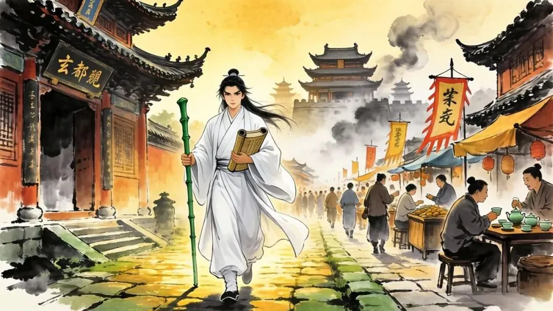 他走出了玄都观,午后的阳光正好,把古老的道观和街道都染上了一片暖金色,江陵城的喧嚣直接扑面而来,既鲜活又真实。
