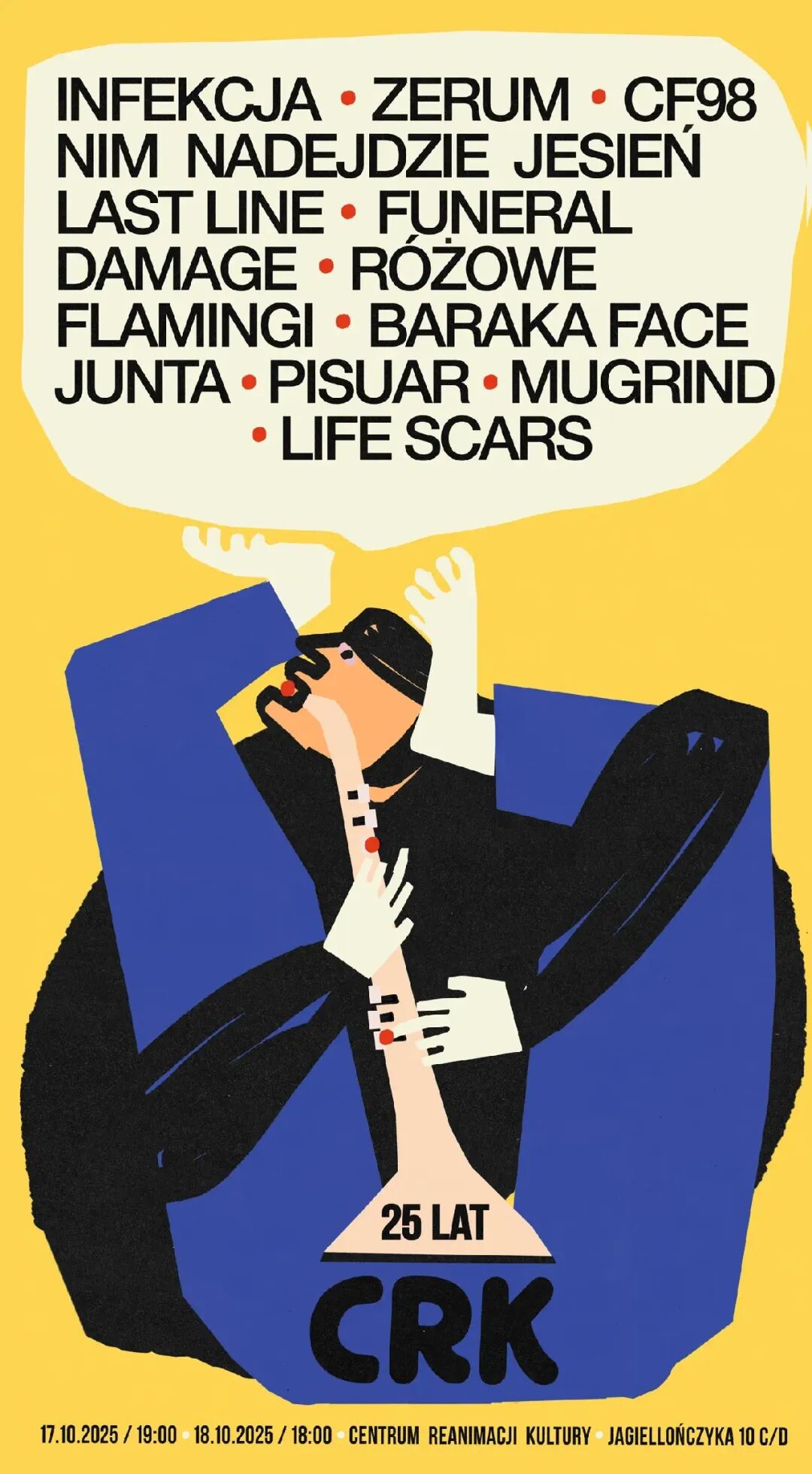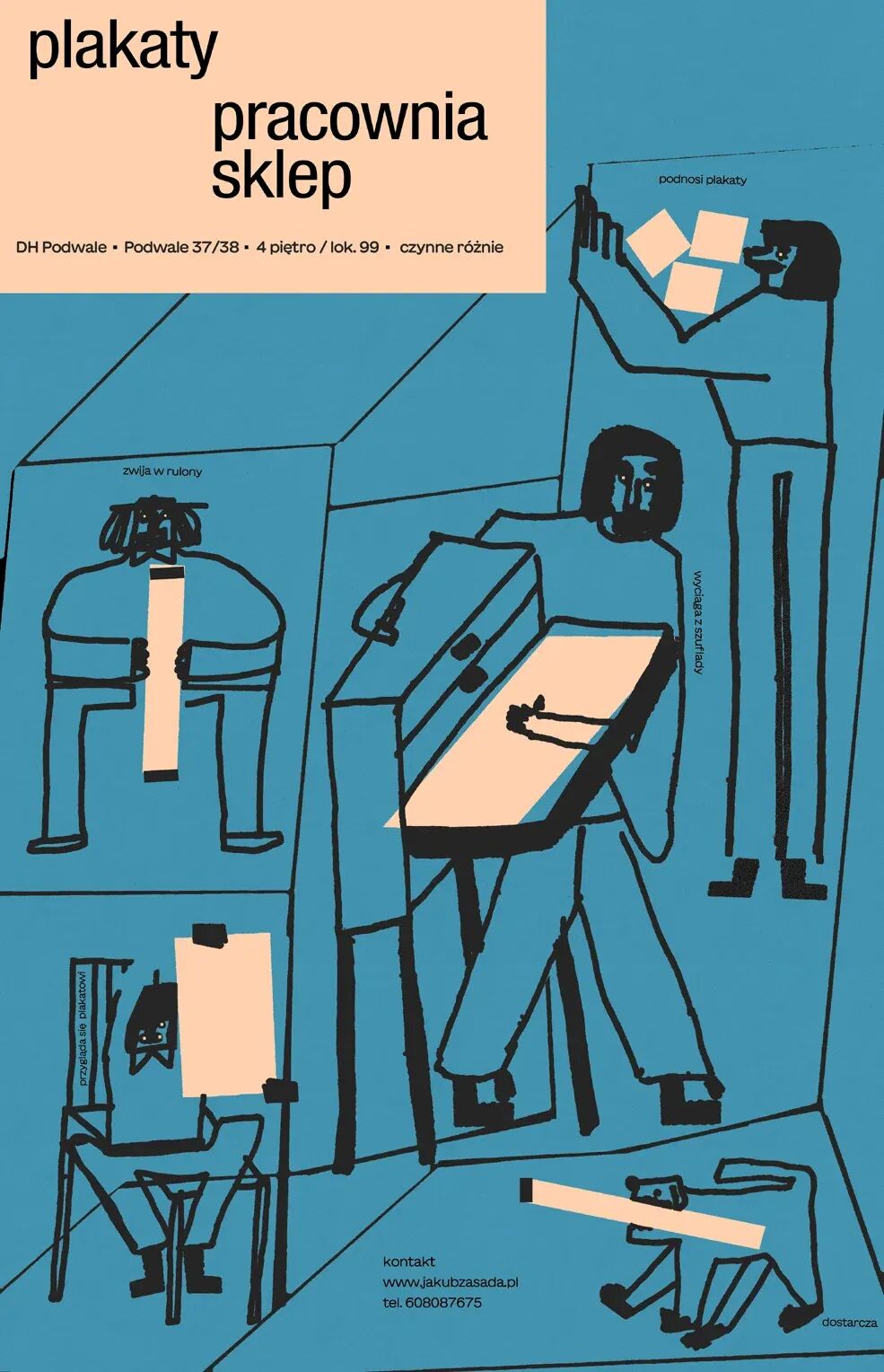 正如雅库布对标语的热衷,他的海报直击要点,且跨越语言障碍,人人皆可理解。“你只需要提供活动地点、日期和时间。我相信每场活动都应该有一张海报,活动结束后,你可以将其提交给当地图书馆的档案馆,”雅库布说道。“对我来说,海报有点像一首歌。你知道它长什么样。你会认出它,会在街上和酒吧里偶遇它。它出现,又消失。”